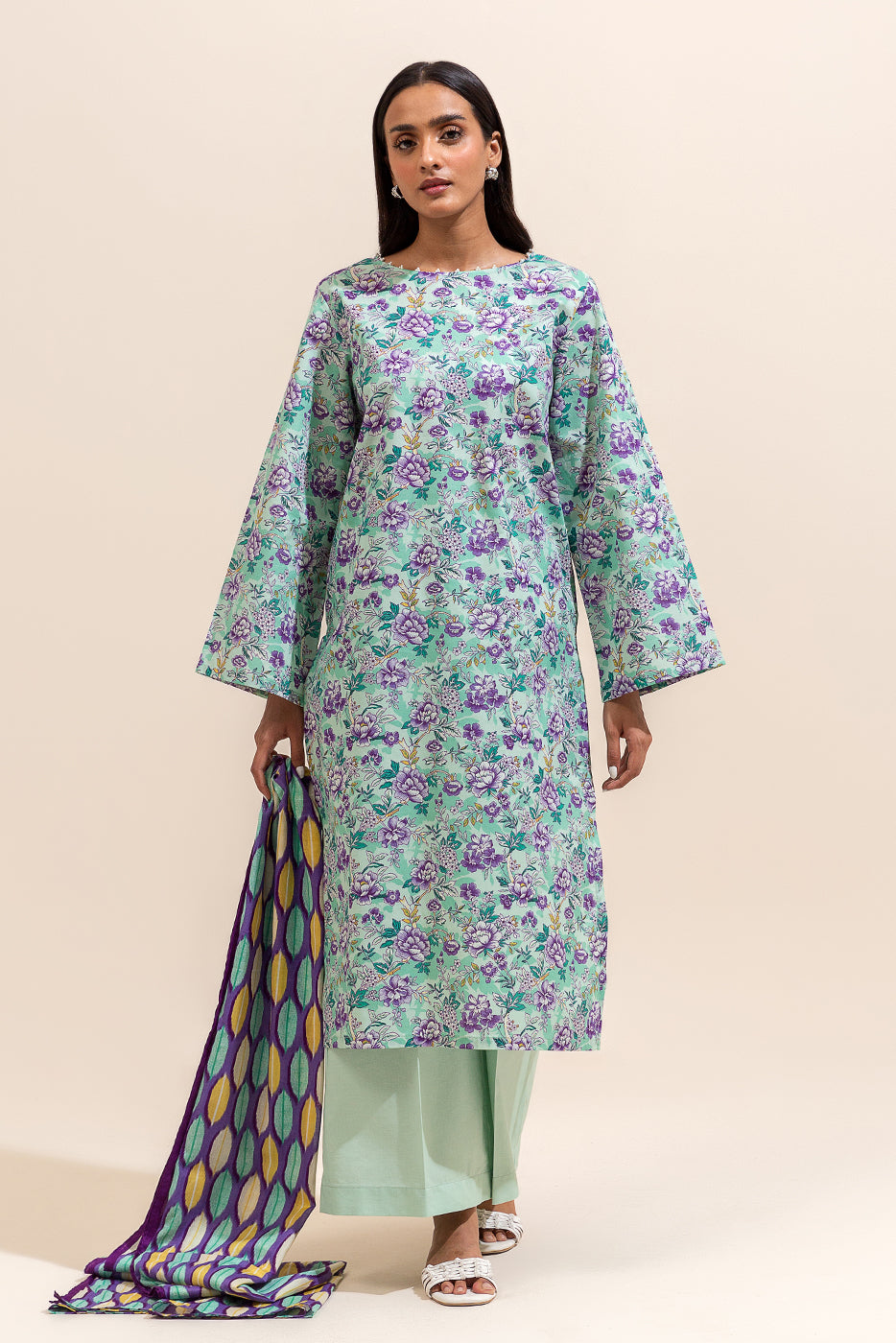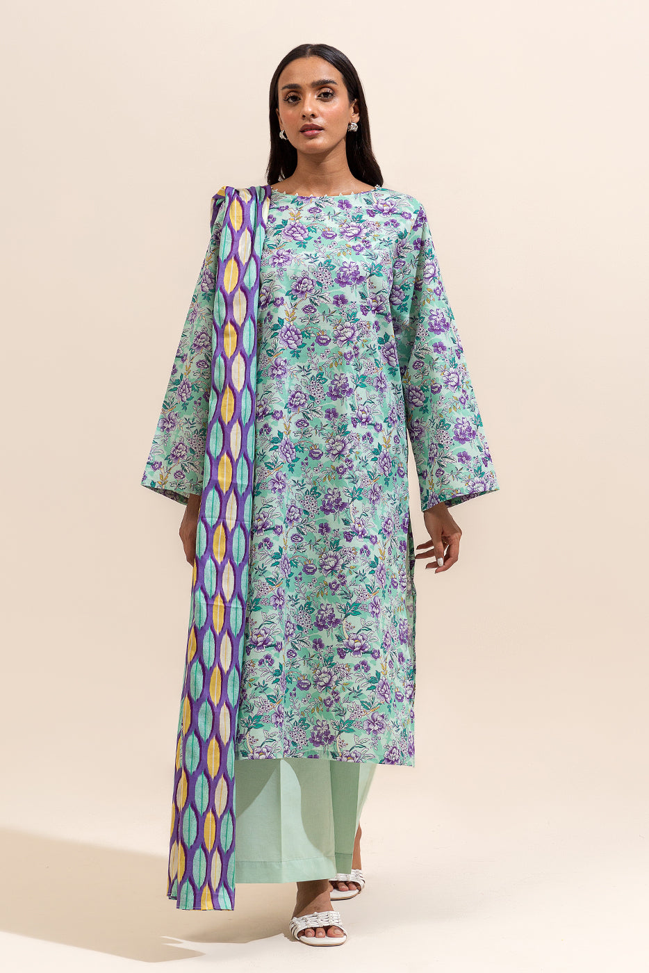 3 PIECE PRINTED LAWN SUIT-PALE GARDENIA ( UNSTITCHED)