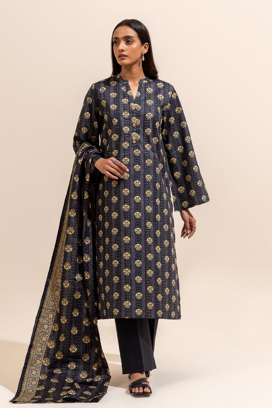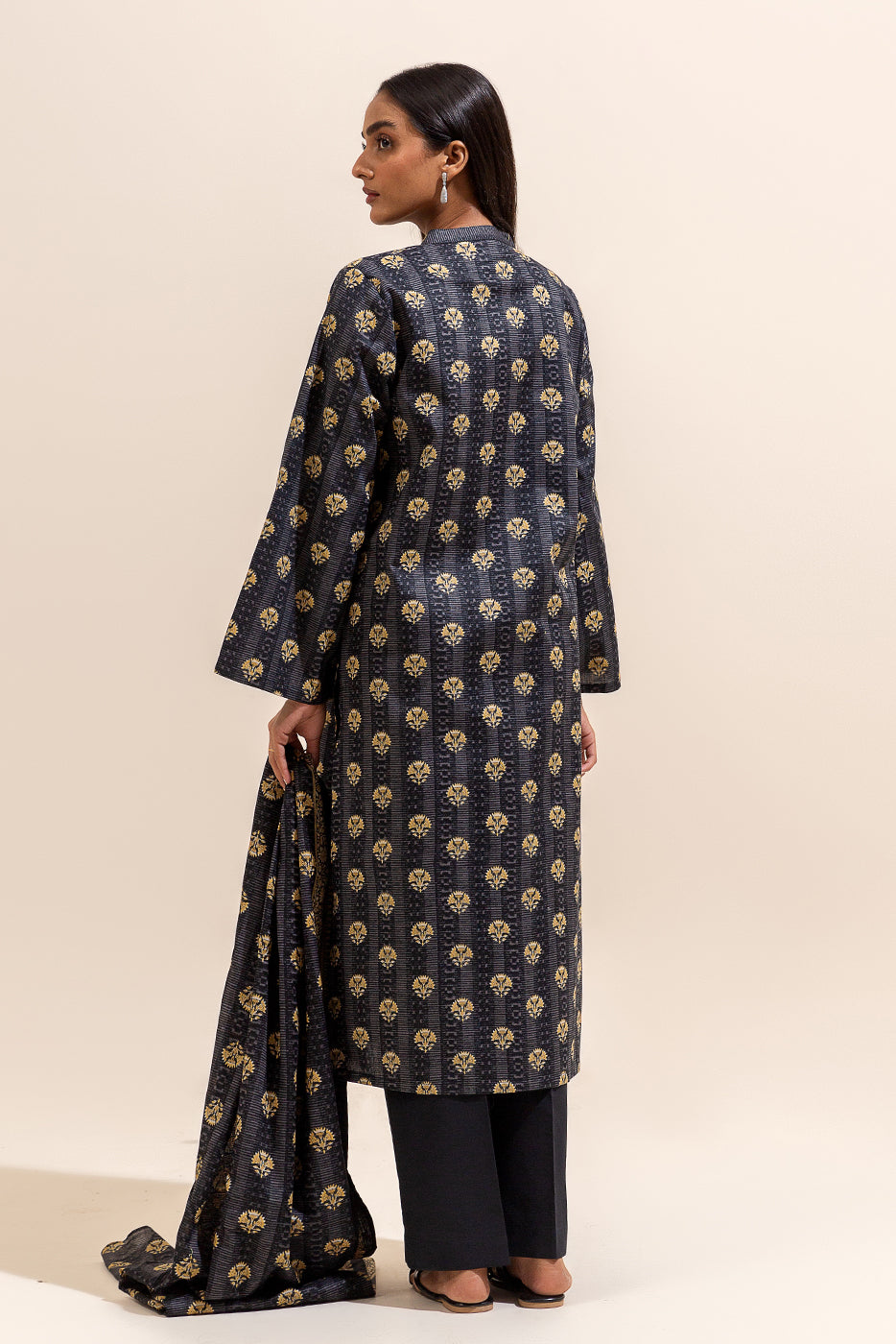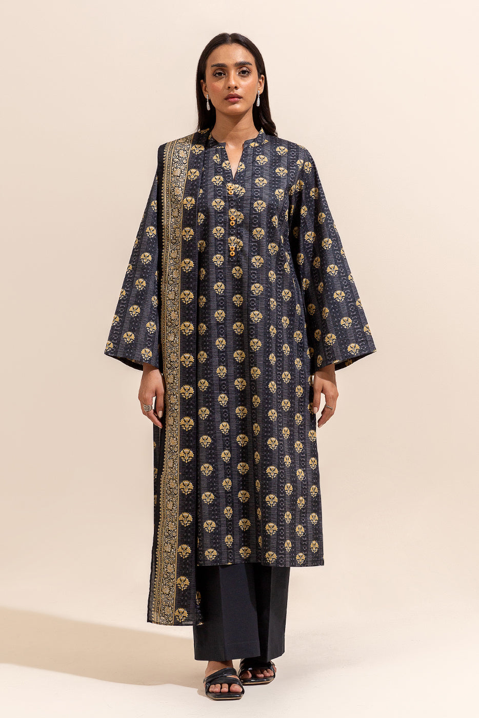 3 PIECE PRINTED LAWN SUIT-BLACK FLAIR (UNSTITCHED)