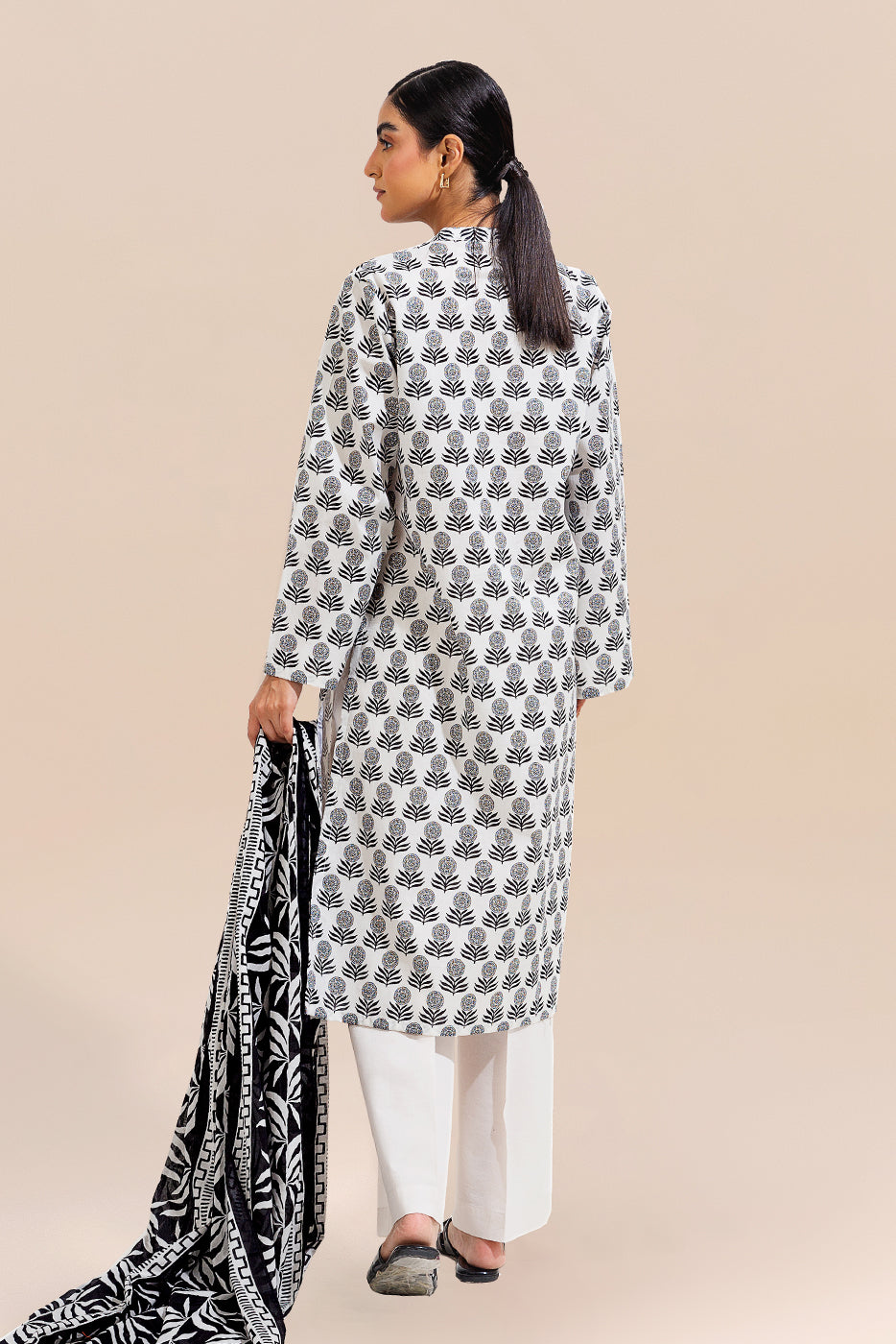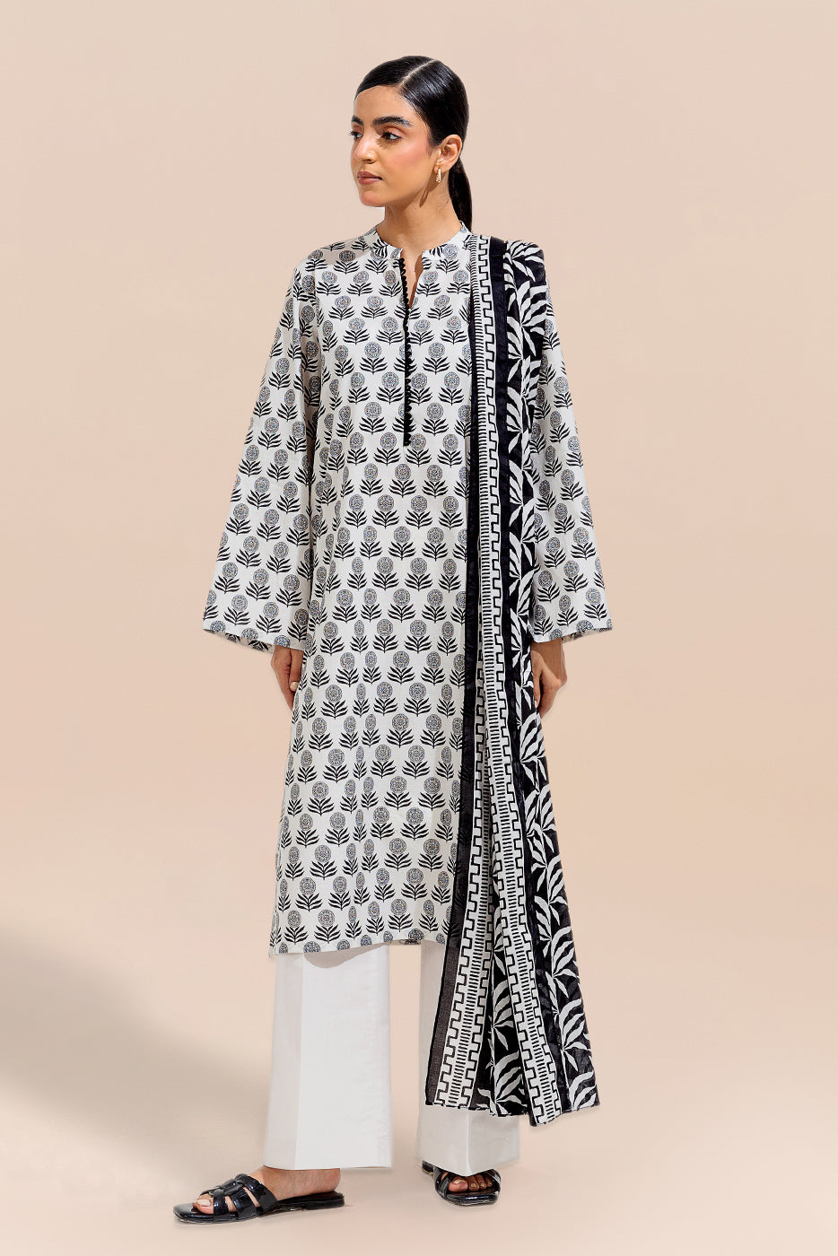 3 PIECE PRINTED LAWN SUIT-IVORY IRON ( UNSTITCHED)