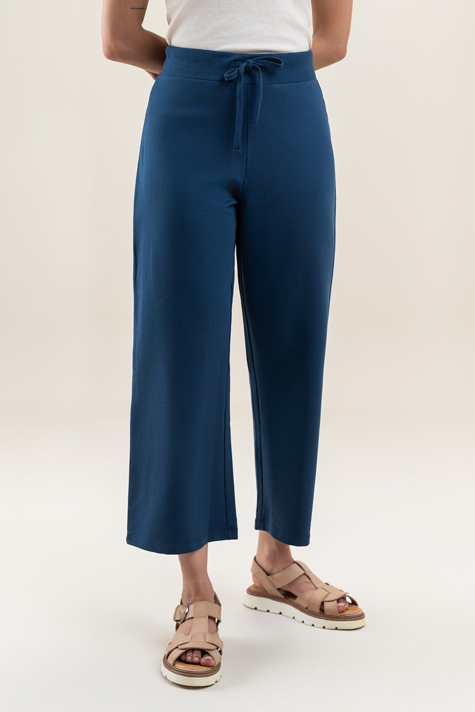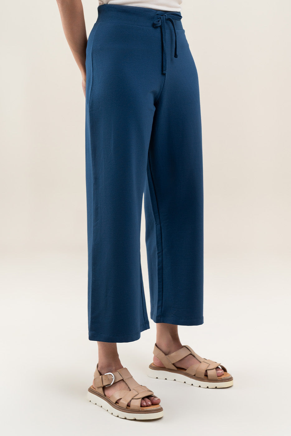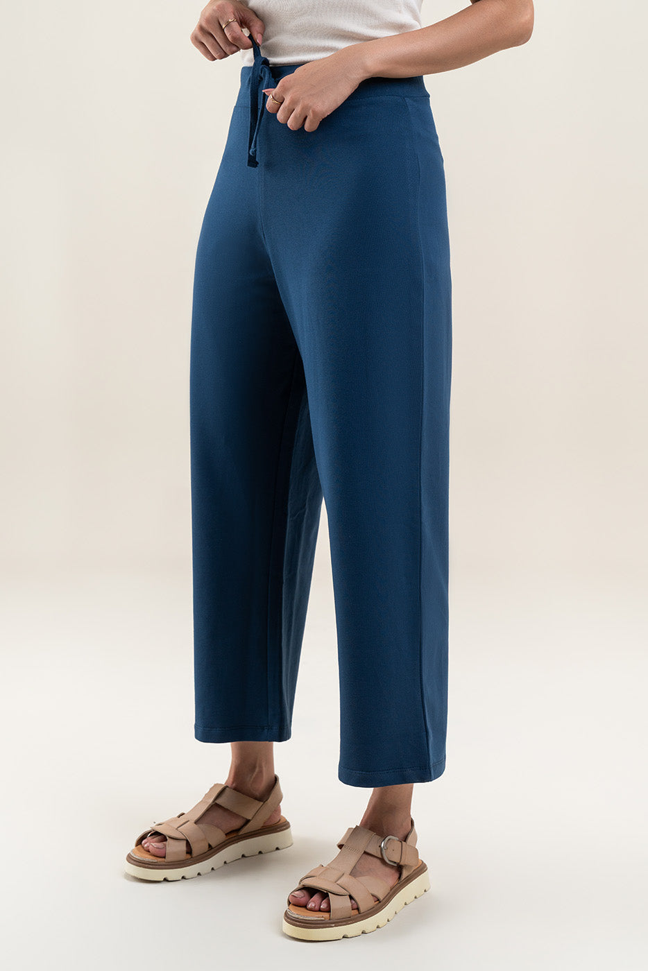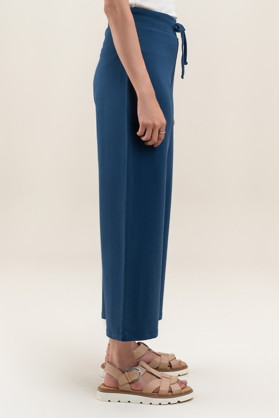 - Description: Cropped wide leg trouser with elasticated waistband and drawcord detail.
