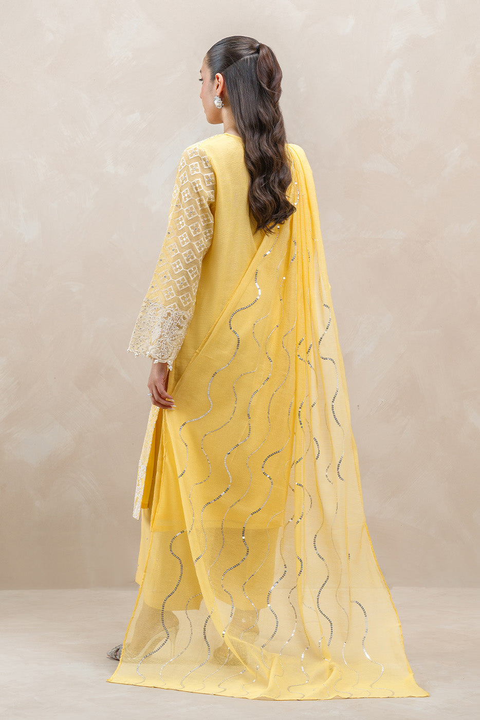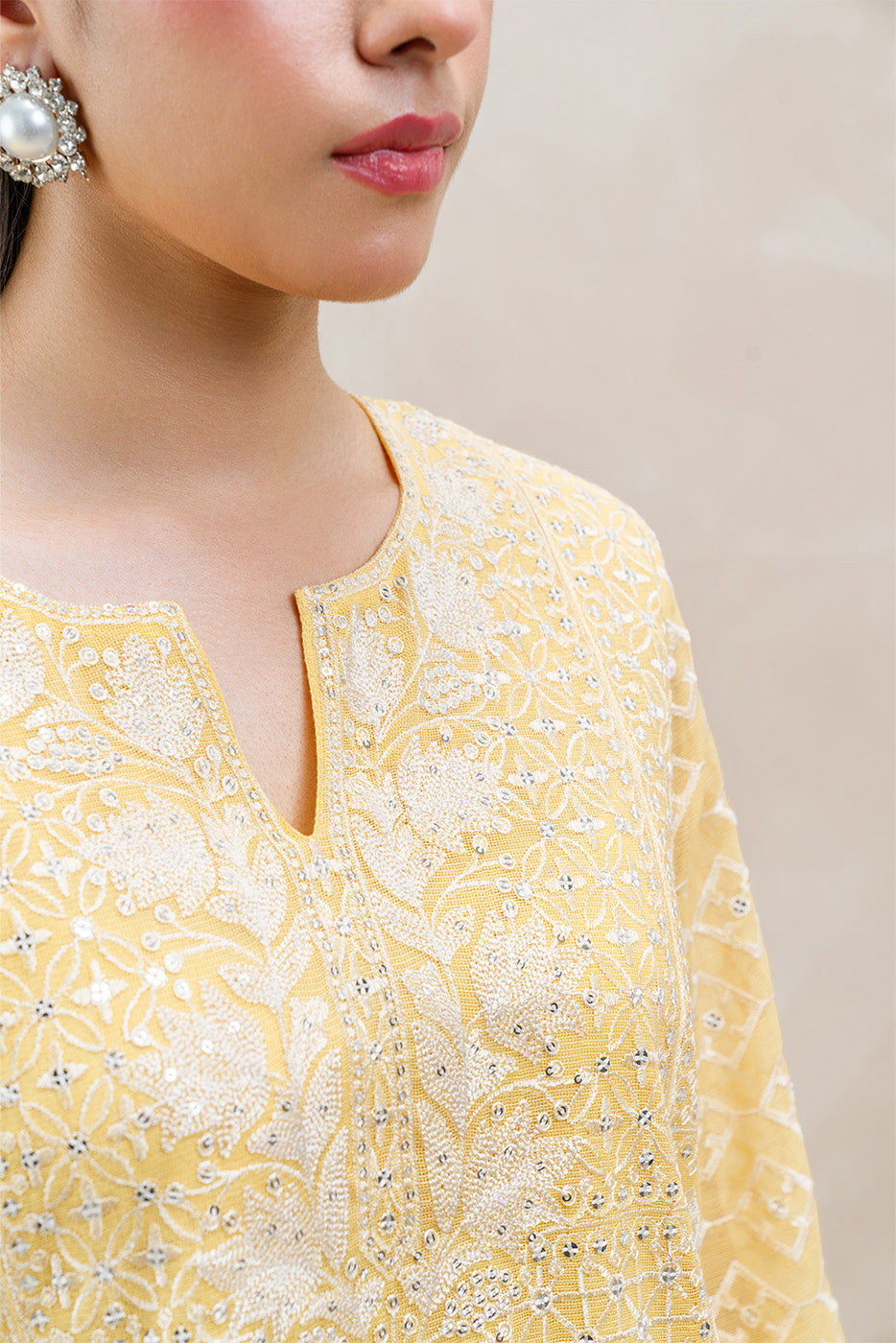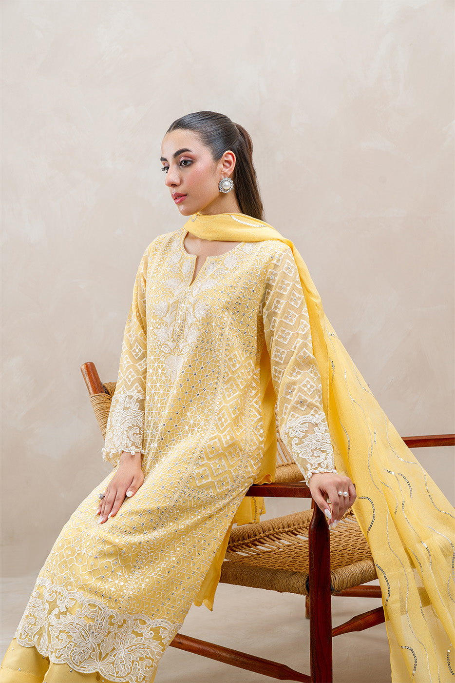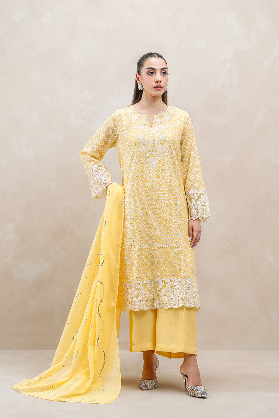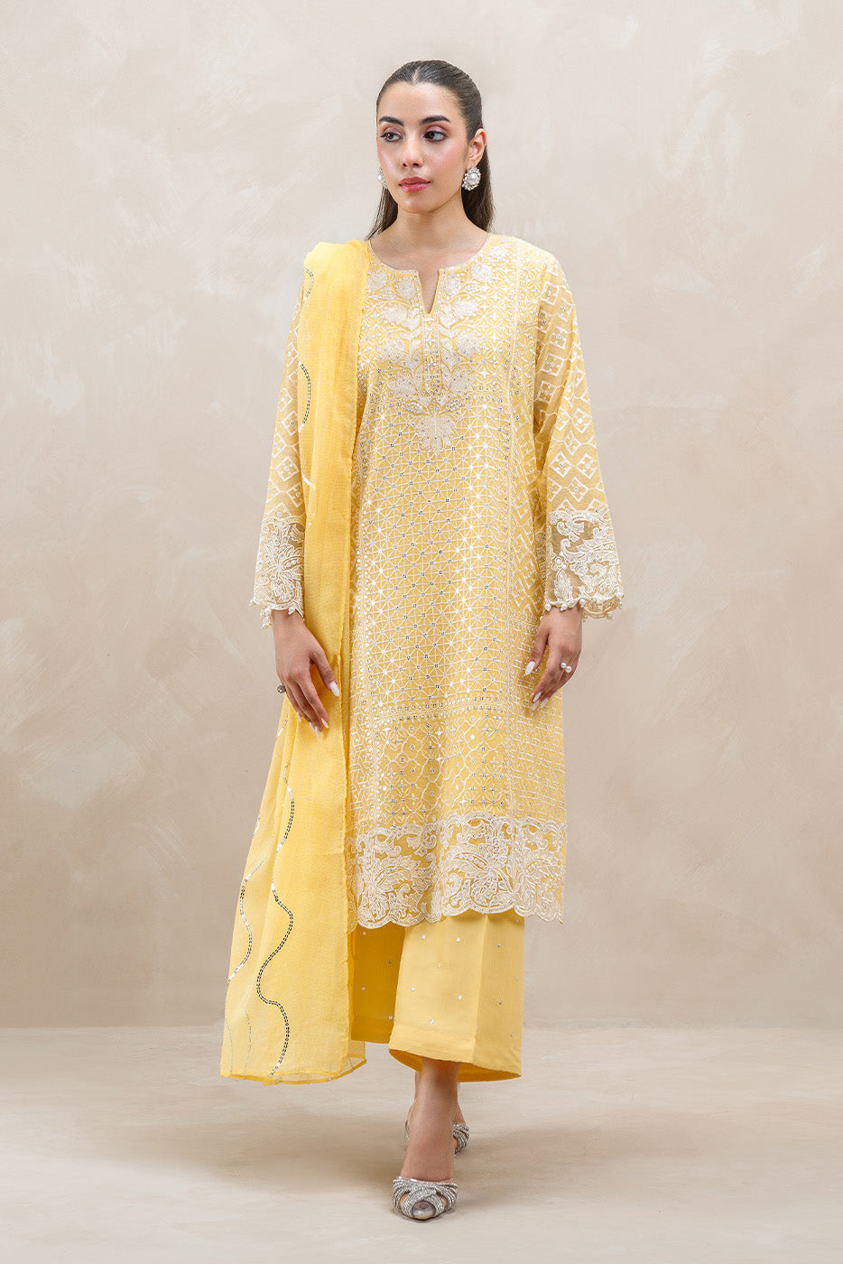 - Description: 2Pc.Embroidered Shirt With Round Neck.Embroidered Sleeves With Pearl Detail.Paired With Cotton Net Embroidered Dupatta.