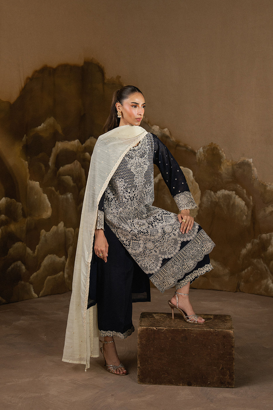 - Description: All over embroidered shirt with cotton thread embroidery and sequin detail. Paired with straight pants and contrast dupatta.