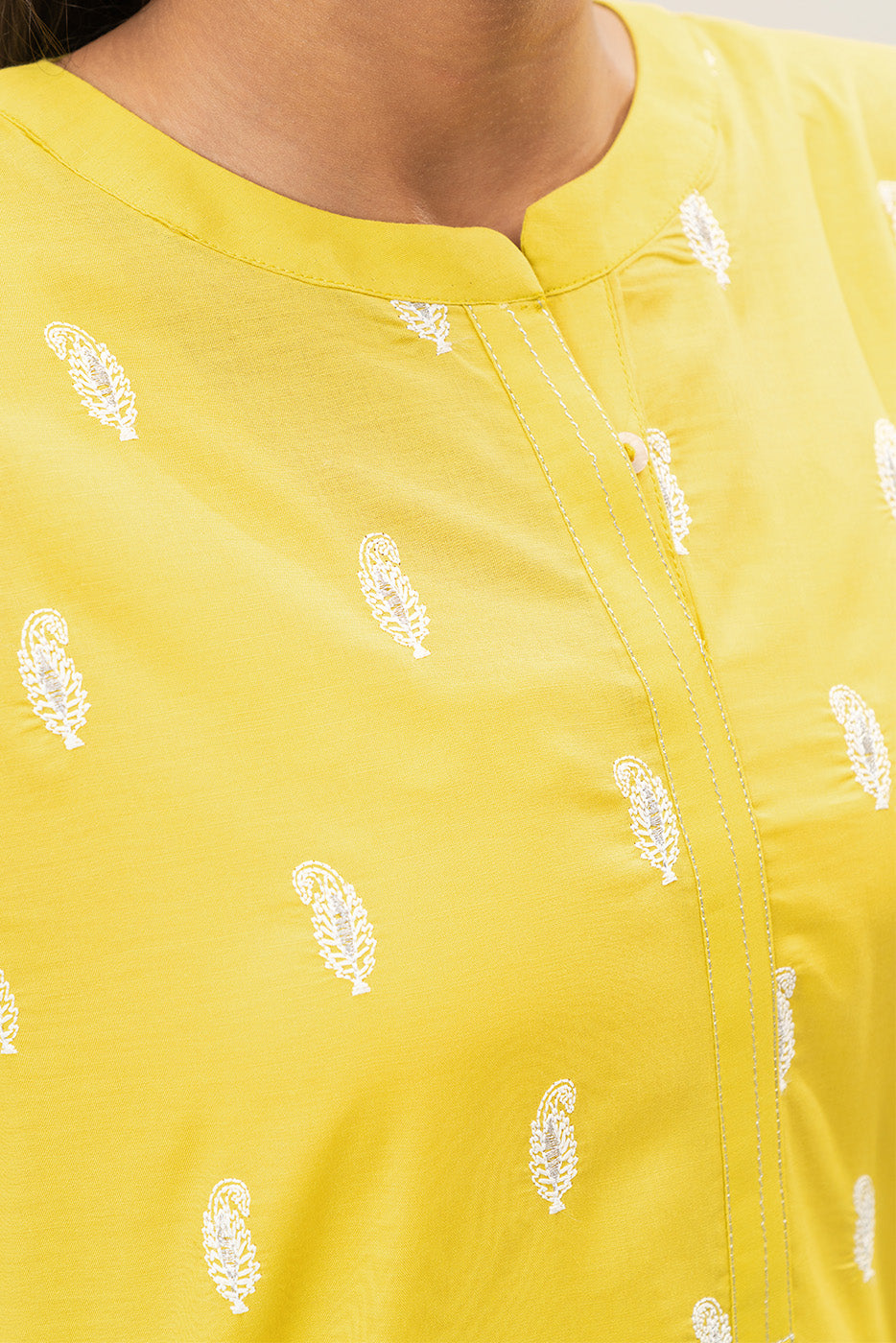 - Description: All Over Embroidered Front And Sleeves With Tilla Stitch Detail On Placket . Sleeves With Cuff Detail . Paired With Culotte Pants