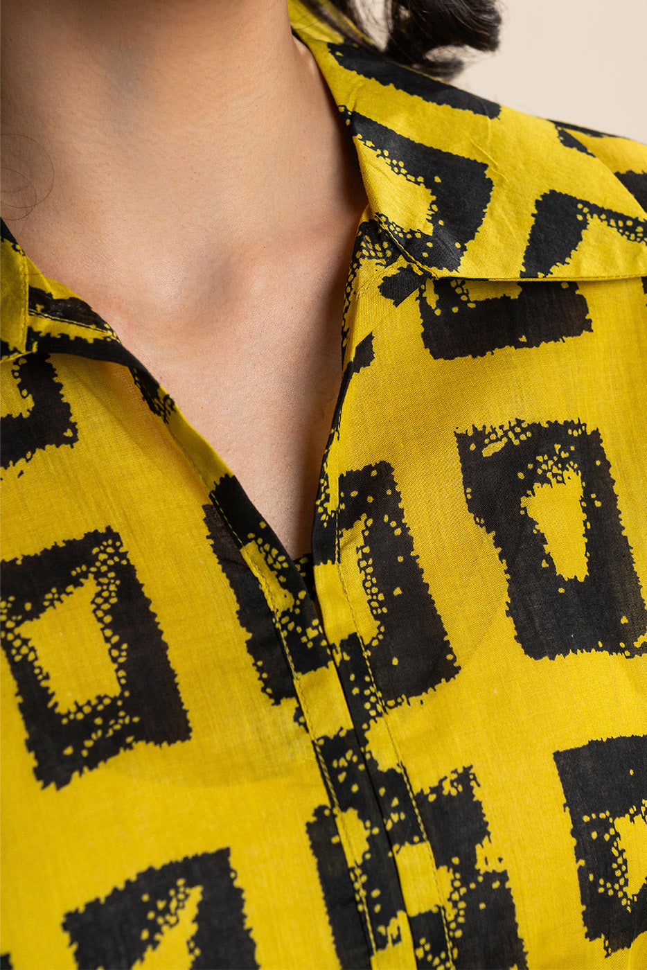 - Description: Basic printed shirt tunic with collar detail.