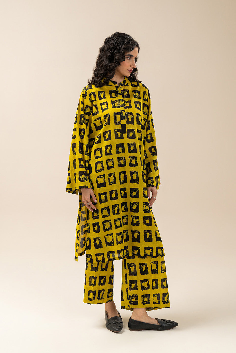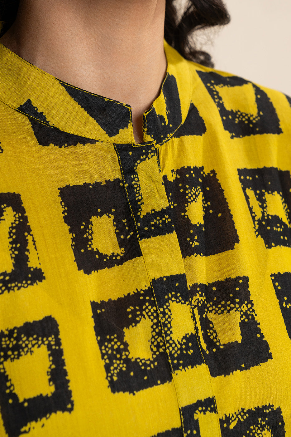 - Description: Basic band collar neckline with placket detail paired with matching culotte pants.