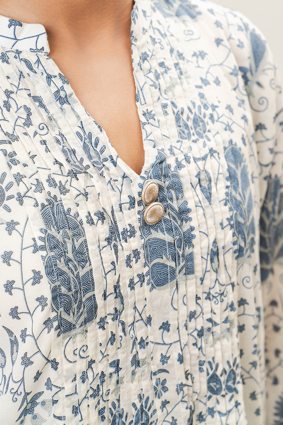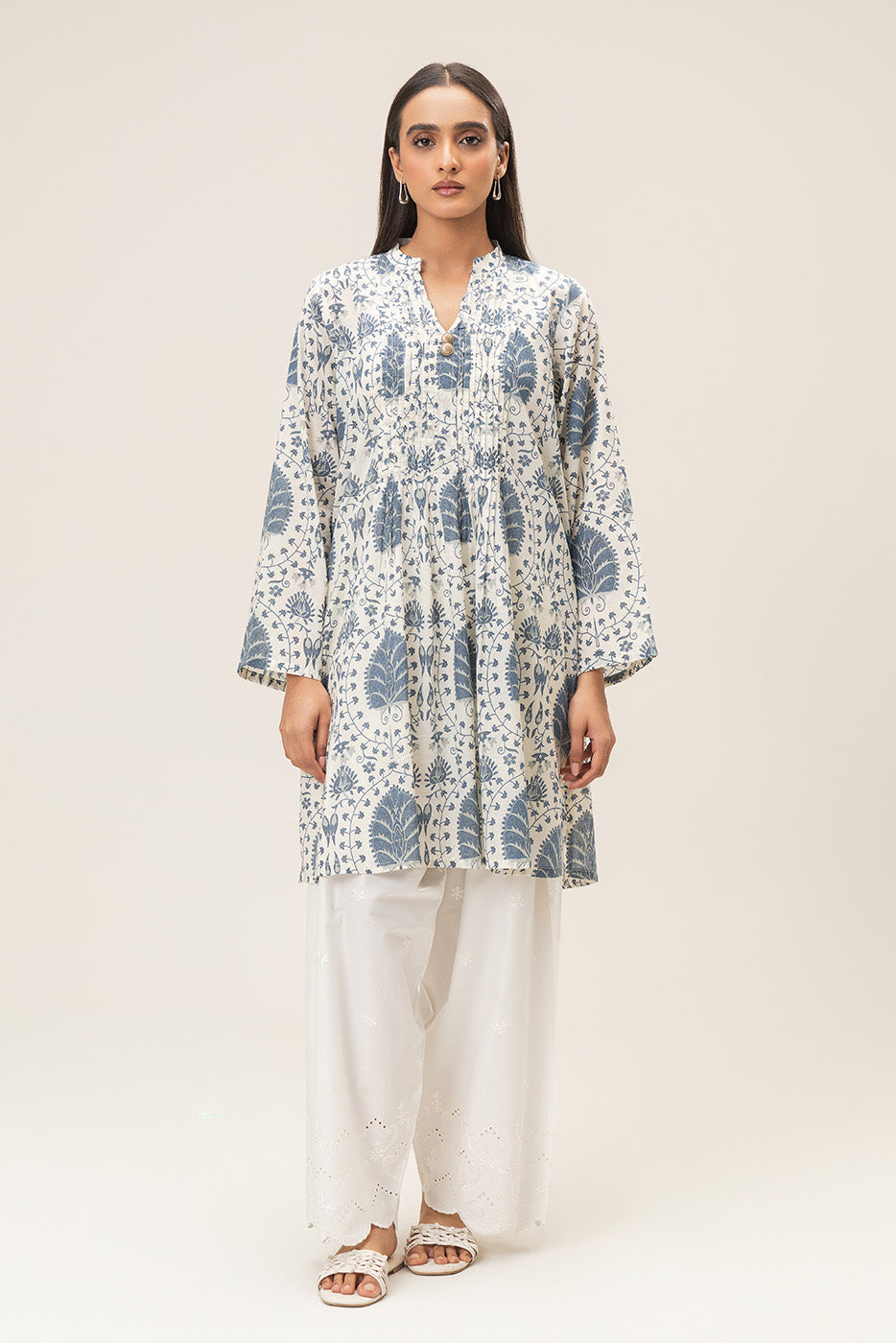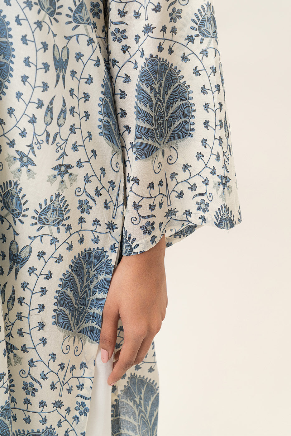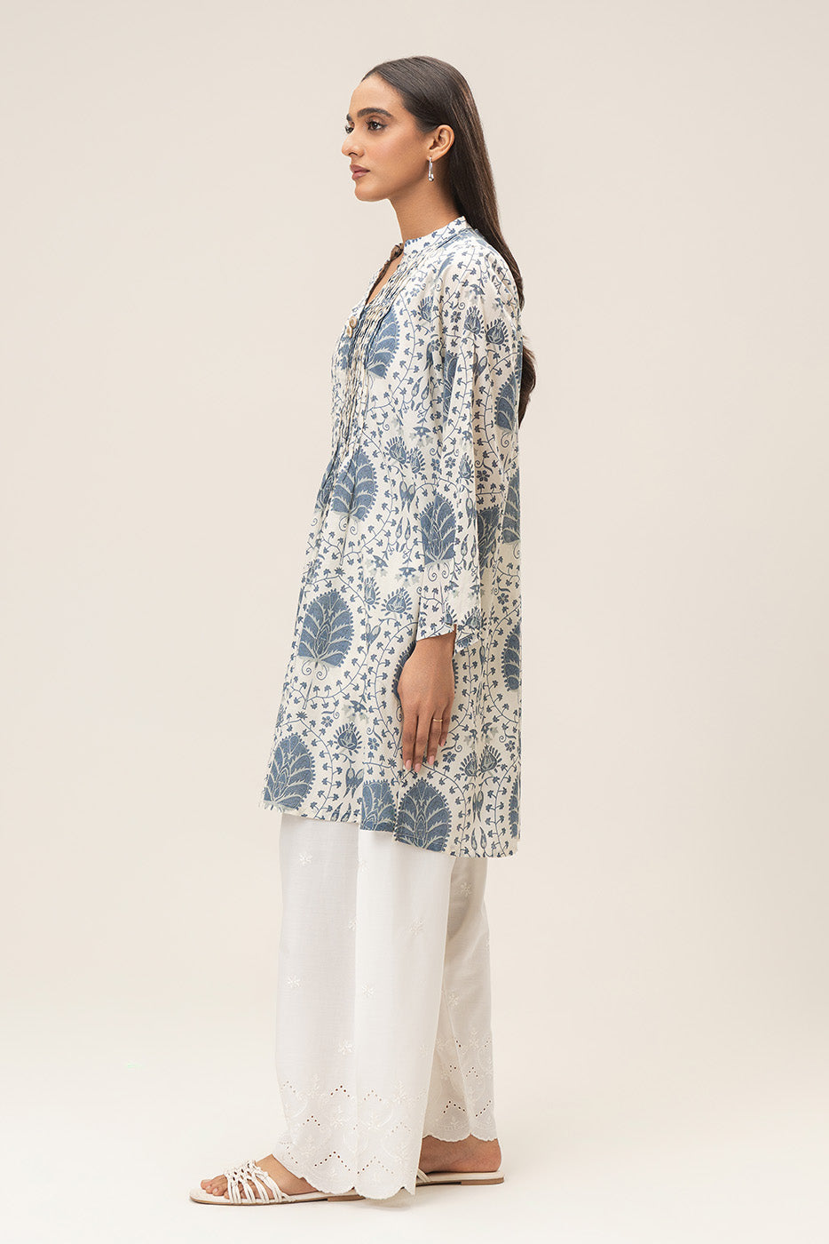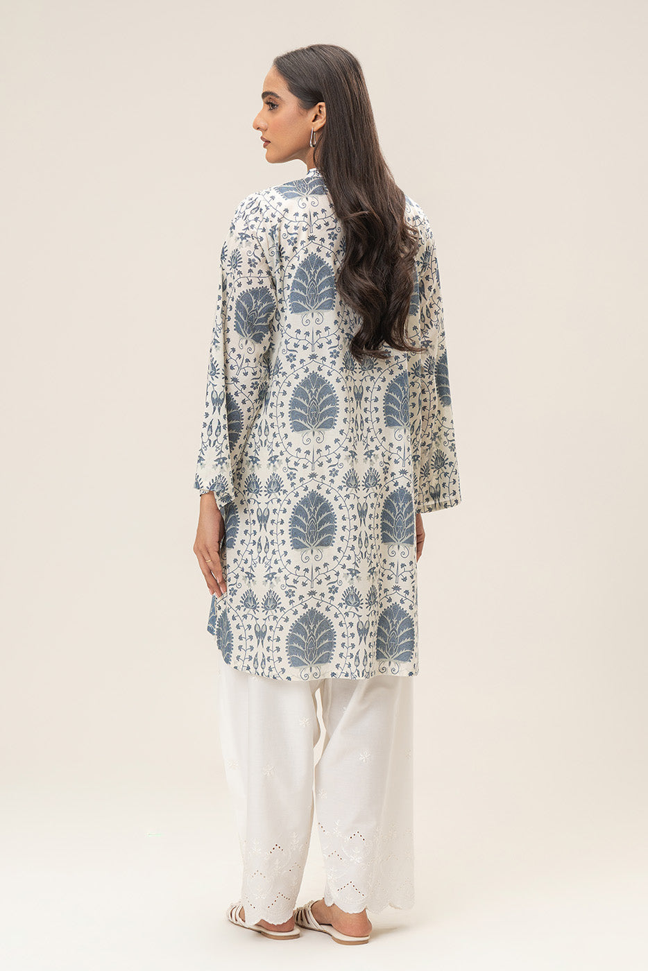 - Description: 1Pc Printed Long Button Down Shirt With Wooden Buttons On Placket.