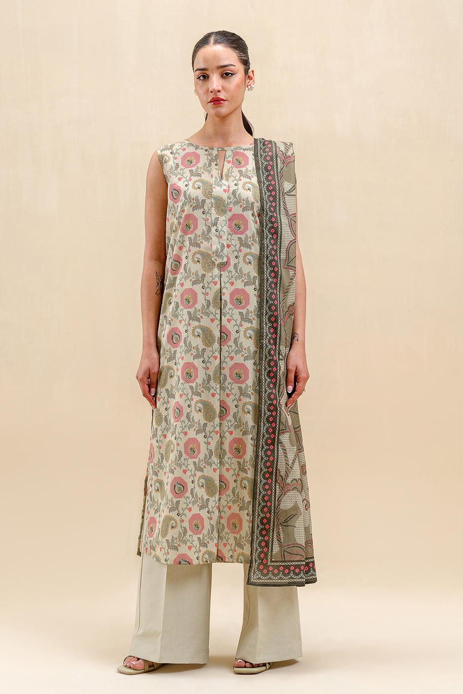 3 PIECE PRINTED LAWN SUIT-MILD DOVE (UNSTITCHED)