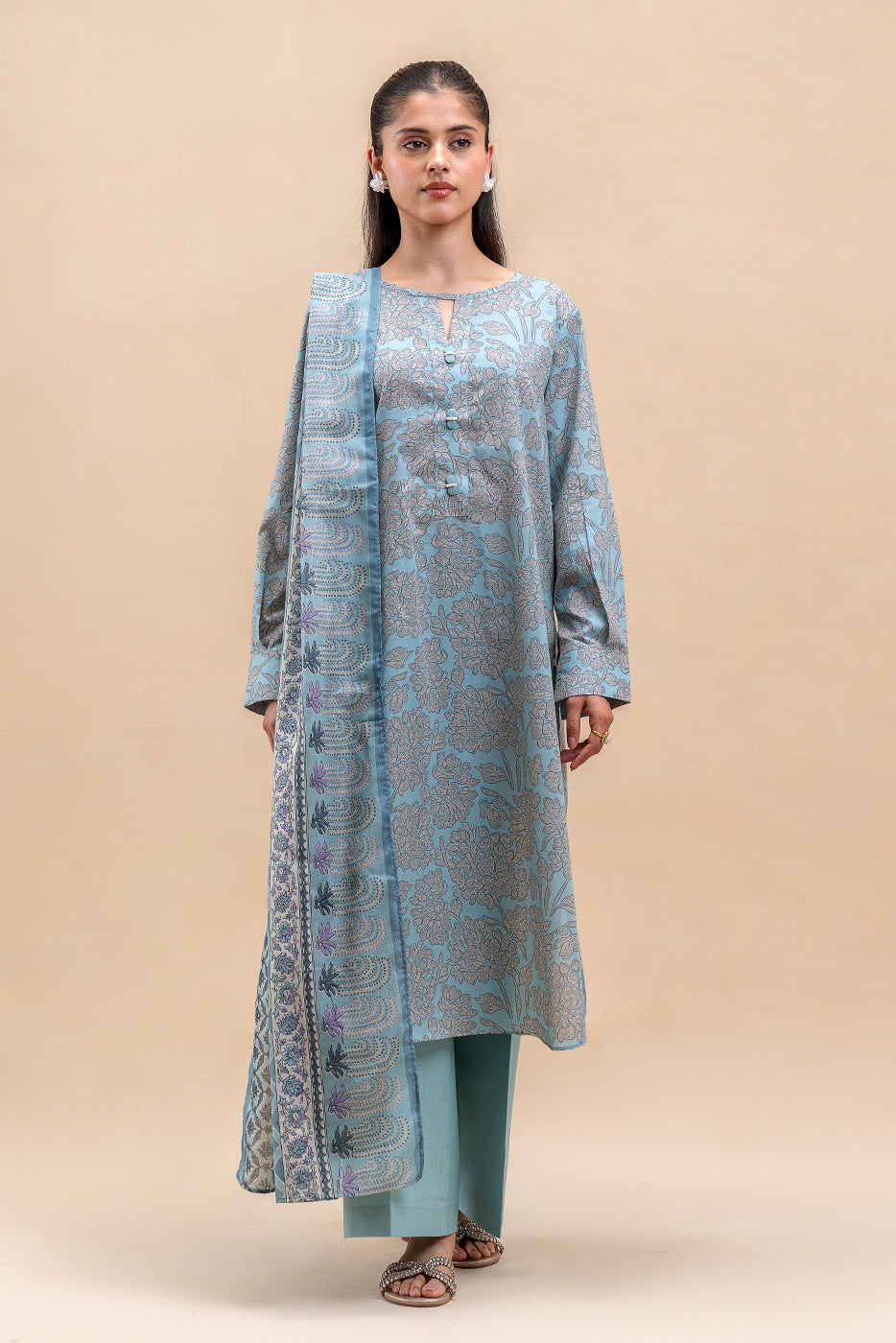 3 PIECE PRINTED LAWN SUIT-SILHOUETTE BLUE (UNSTITCHED)