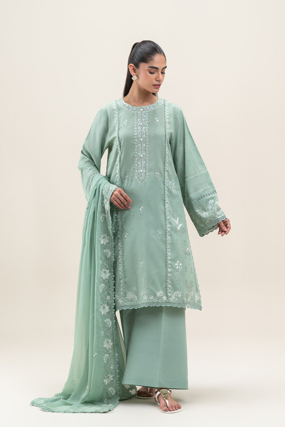 3 PIECE EMBROIDERED SELF JACQUARD SELF JACQUARD SUIT-PISTACHIO PASTEL (UNSTITCHED)