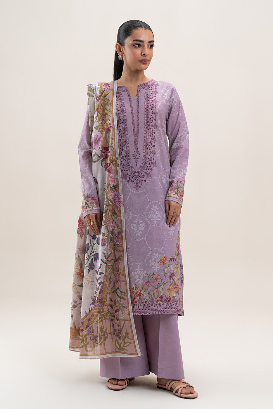 3 PIECE PRINTED LAWN SUIT-HEATHER BLOOM (UNSTITCHED)