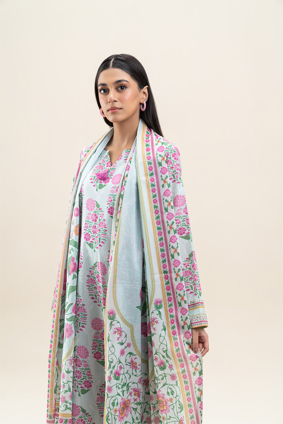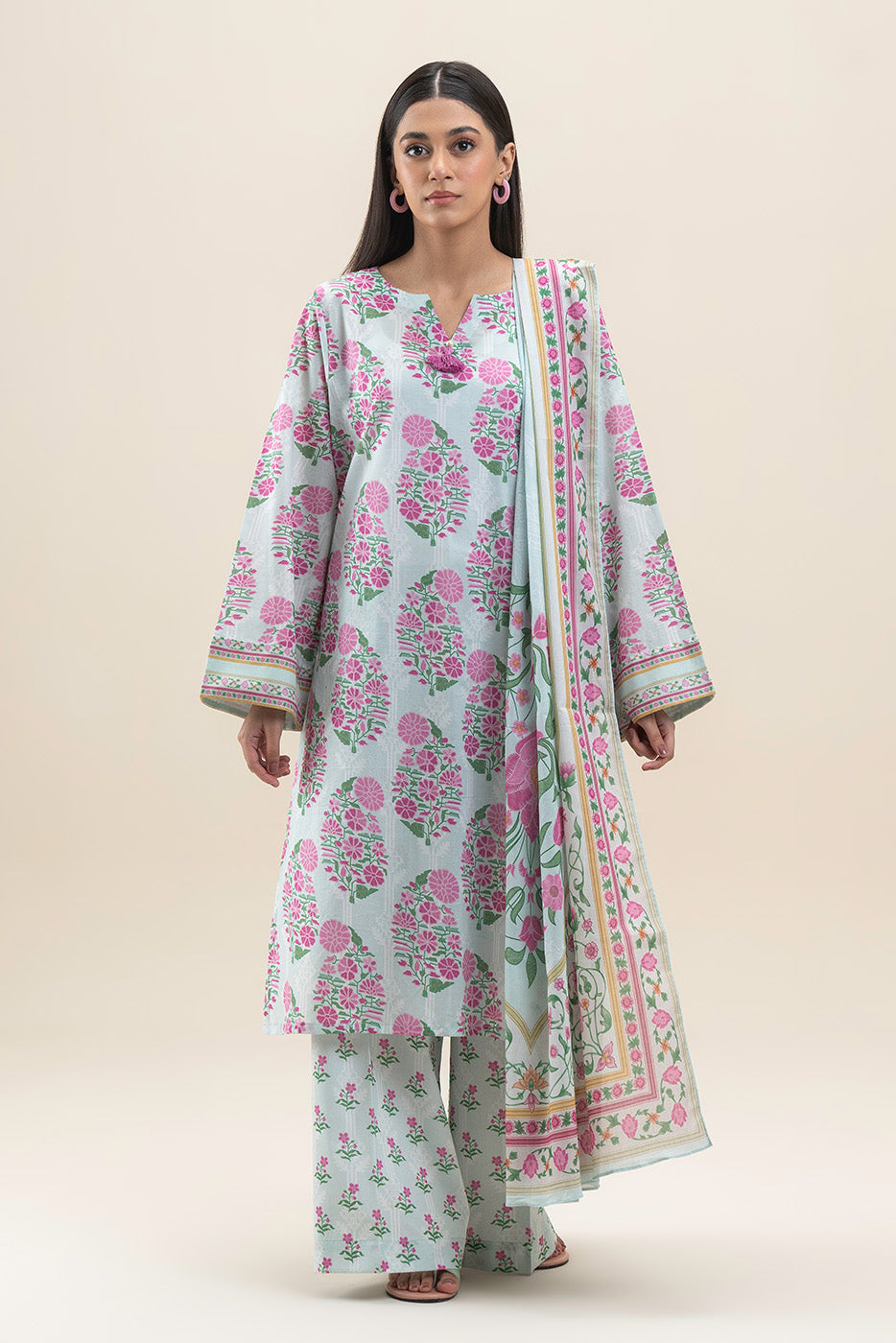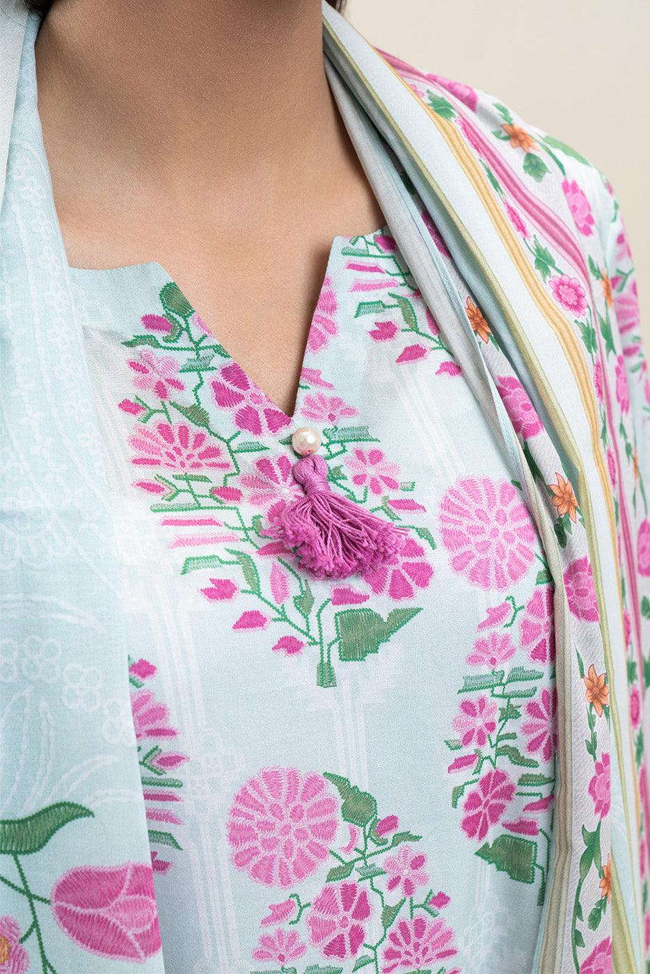 2 PIECE PRINTED LAWN SUIT-PISTACHIO TRIBE (UNSTITCHED)