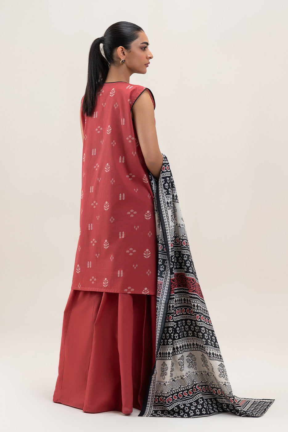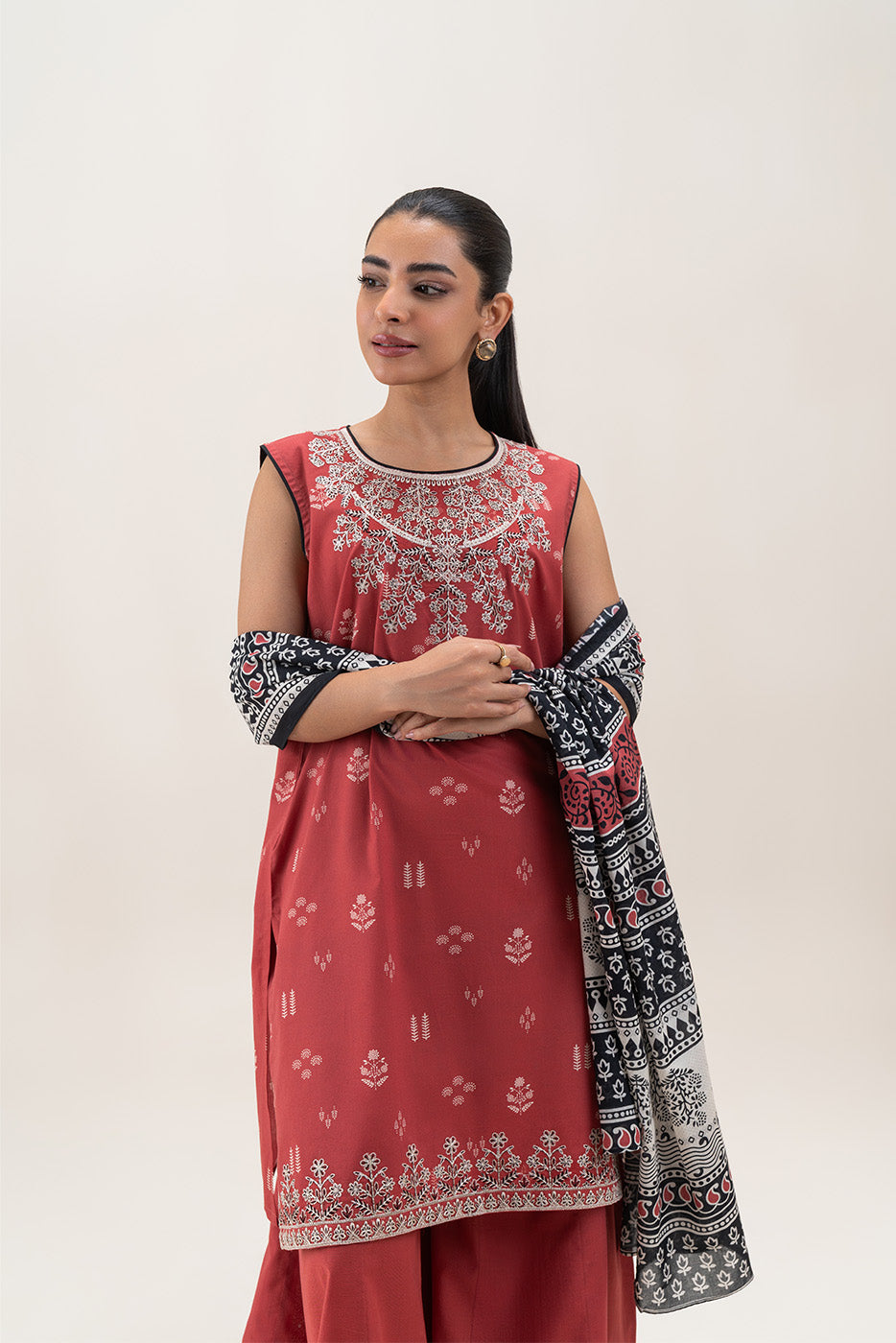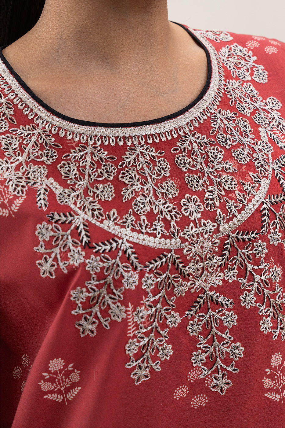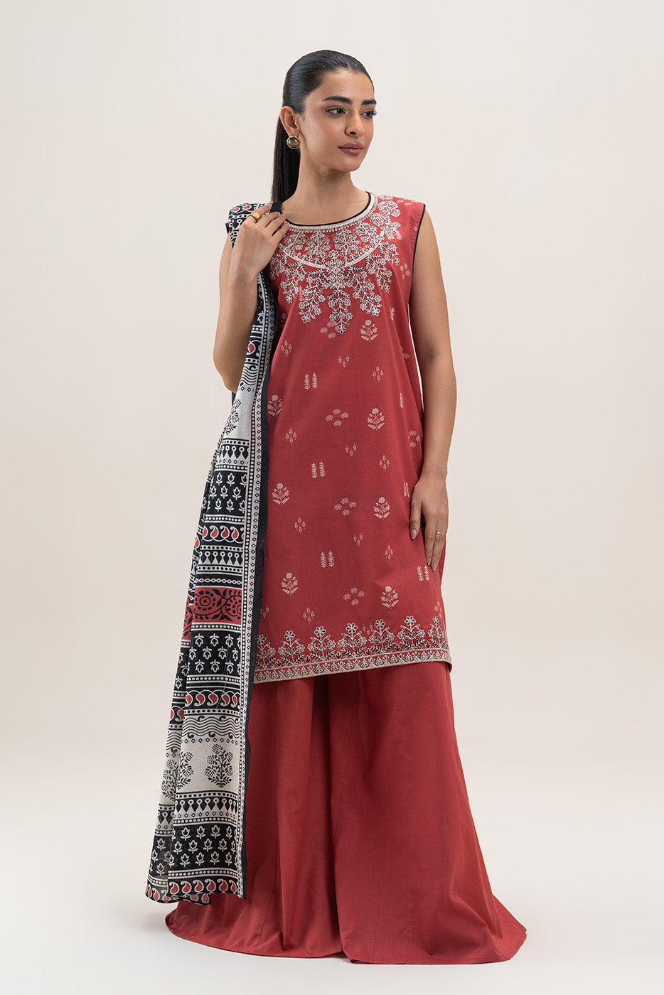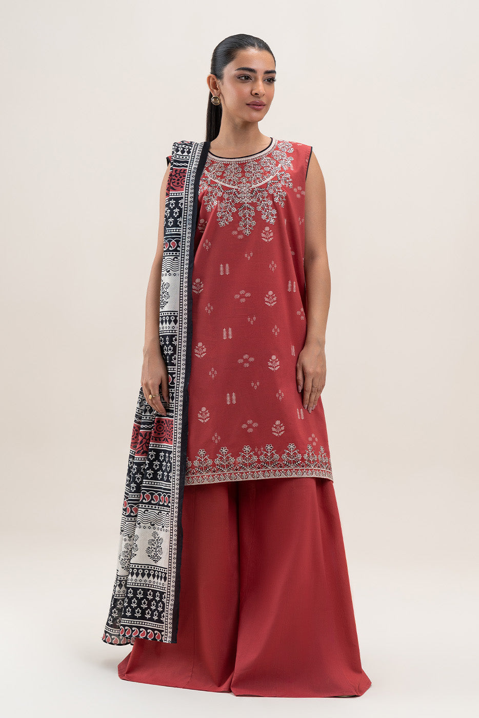 3 PIECE EMBROIDERED LAWN SUIT-CARMINE GLOW (UNSTITCHED)