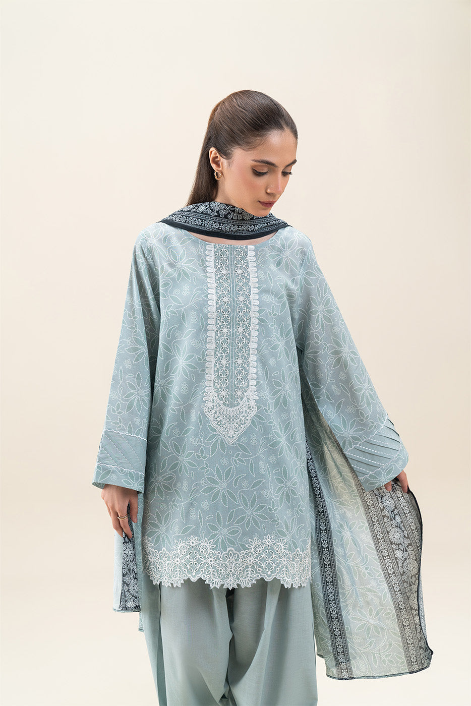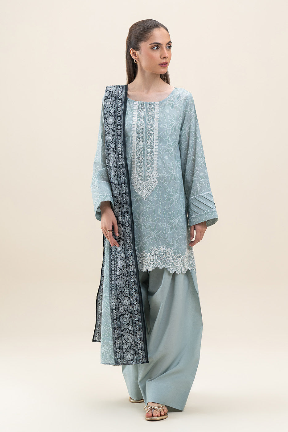 3 PIECE EMBROIDERED LAWN SUIT-DAZZLE SAGE (UNSTITCHED)