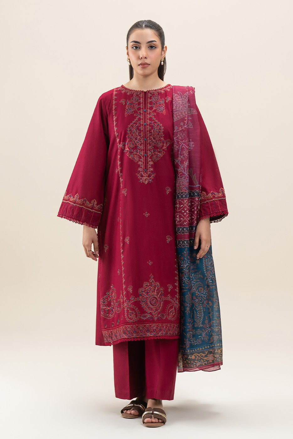 3 PIECE EMBROIDERED LAWN SUIT-SCARLET GLOW (UNSTITCHED)