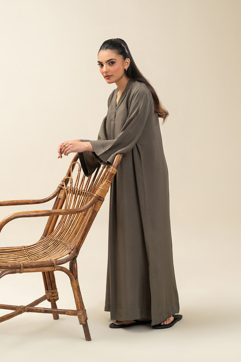 - Description: Long Tunic With Double Cuff Detail And Collar With Front Pleat