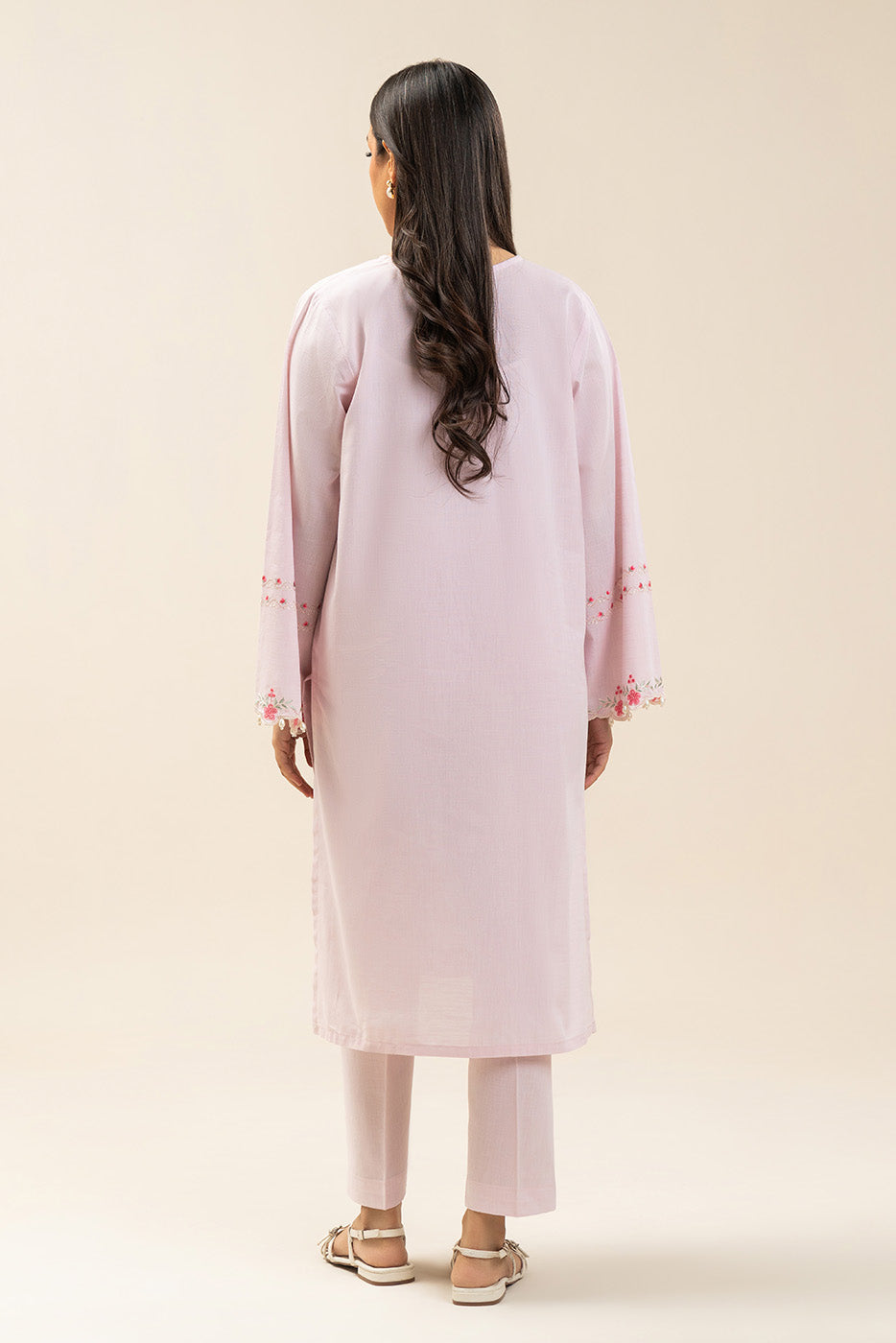 - Description: Basic Round Neck With V. Embroidered Front + Sleeves With Handwork Details Paired With Straight Pants.