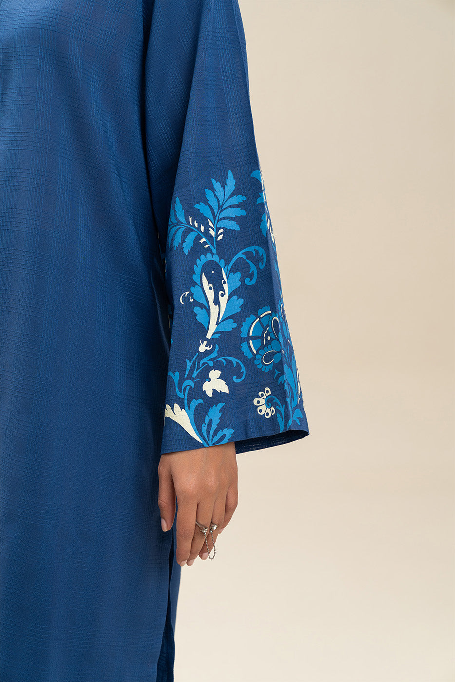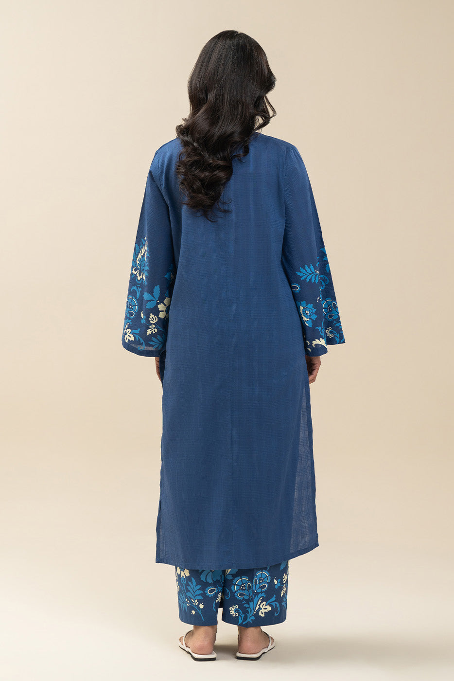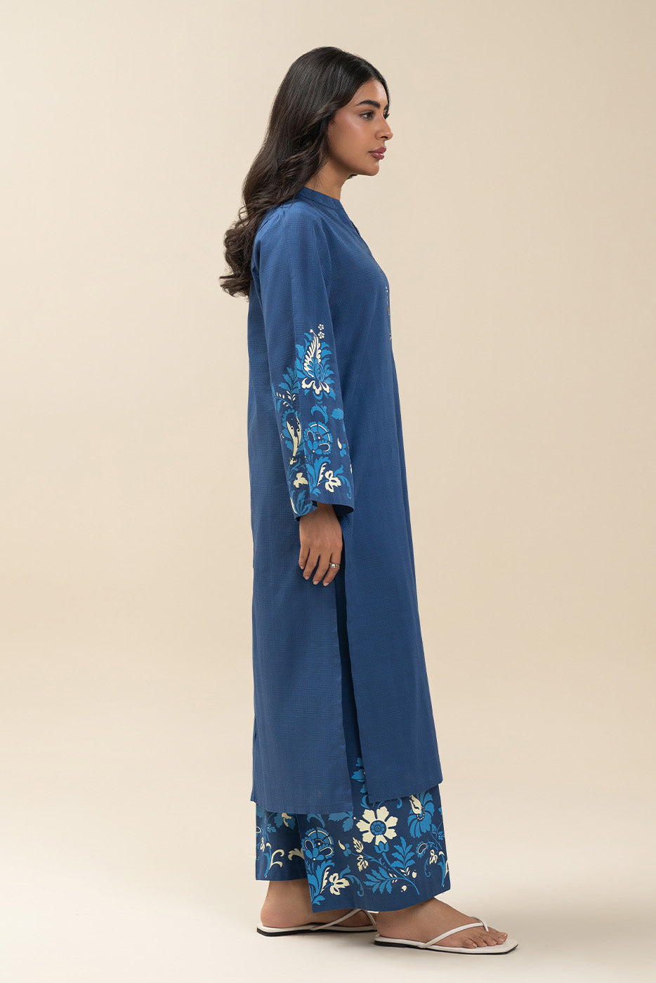 Screen Printed Set With Handwork Detail On Neckline Paired With Printed Culotte Pants.