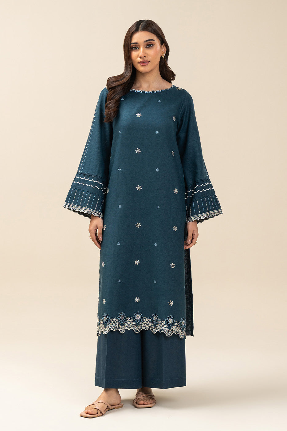 - 1.2 Mtrs Embroidered Textured Lawn Front,