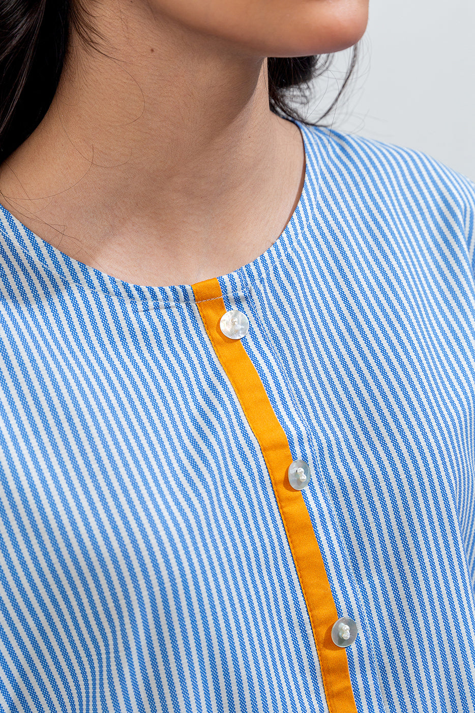 - Description: Printed Shirt With Double Placket Detail And Accent Color Trim