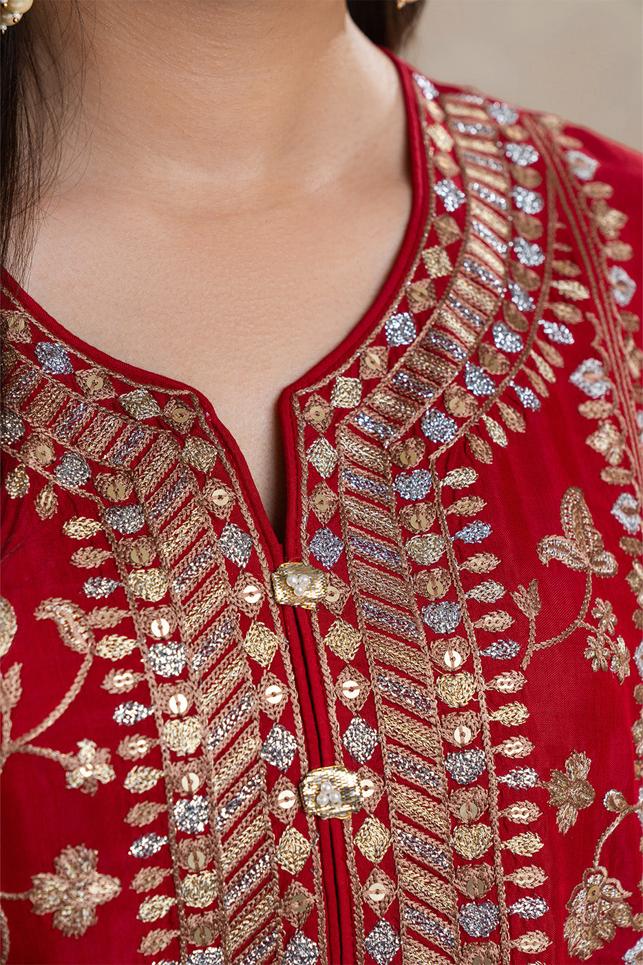 3 PIECE EMBROIDERED RAW SILK SUIT (LUXURY-PRET)
