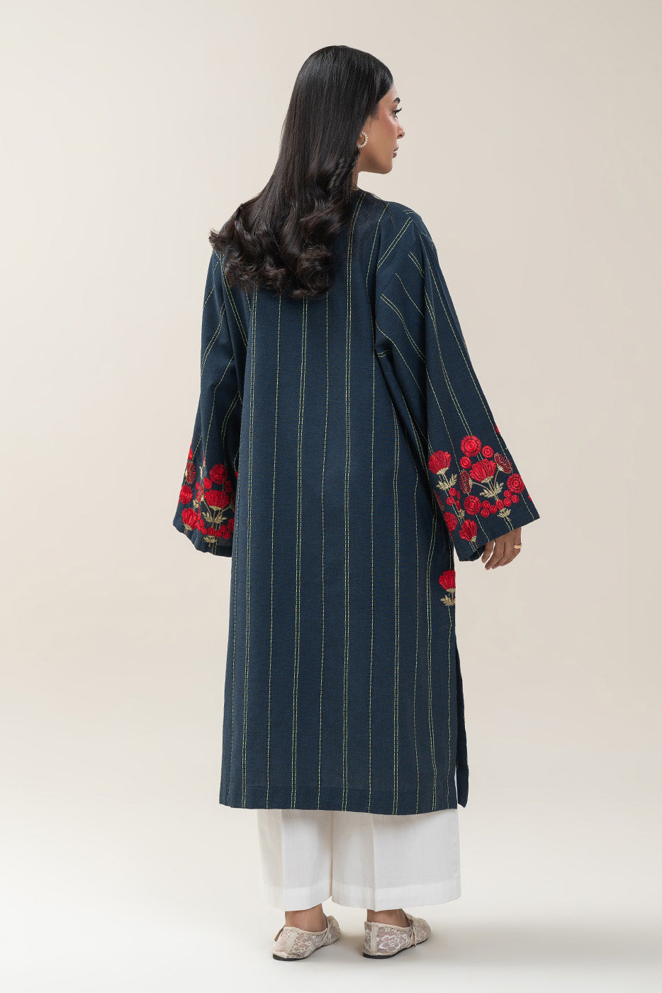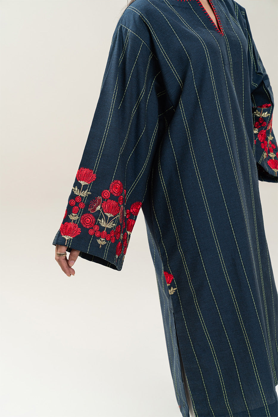- Description: Embroidered Shirt With Round Neckline And Slit With Contrasting Blanket Stitch Detail, Embroidered Border On Sleeves.