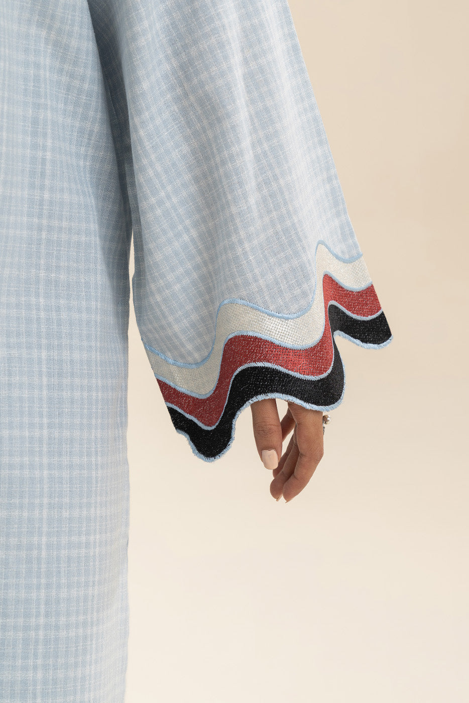 - Description: 2Pc Mid Shirt With Embroidered Sleeves And Neckline Paired With Culotte Pants.