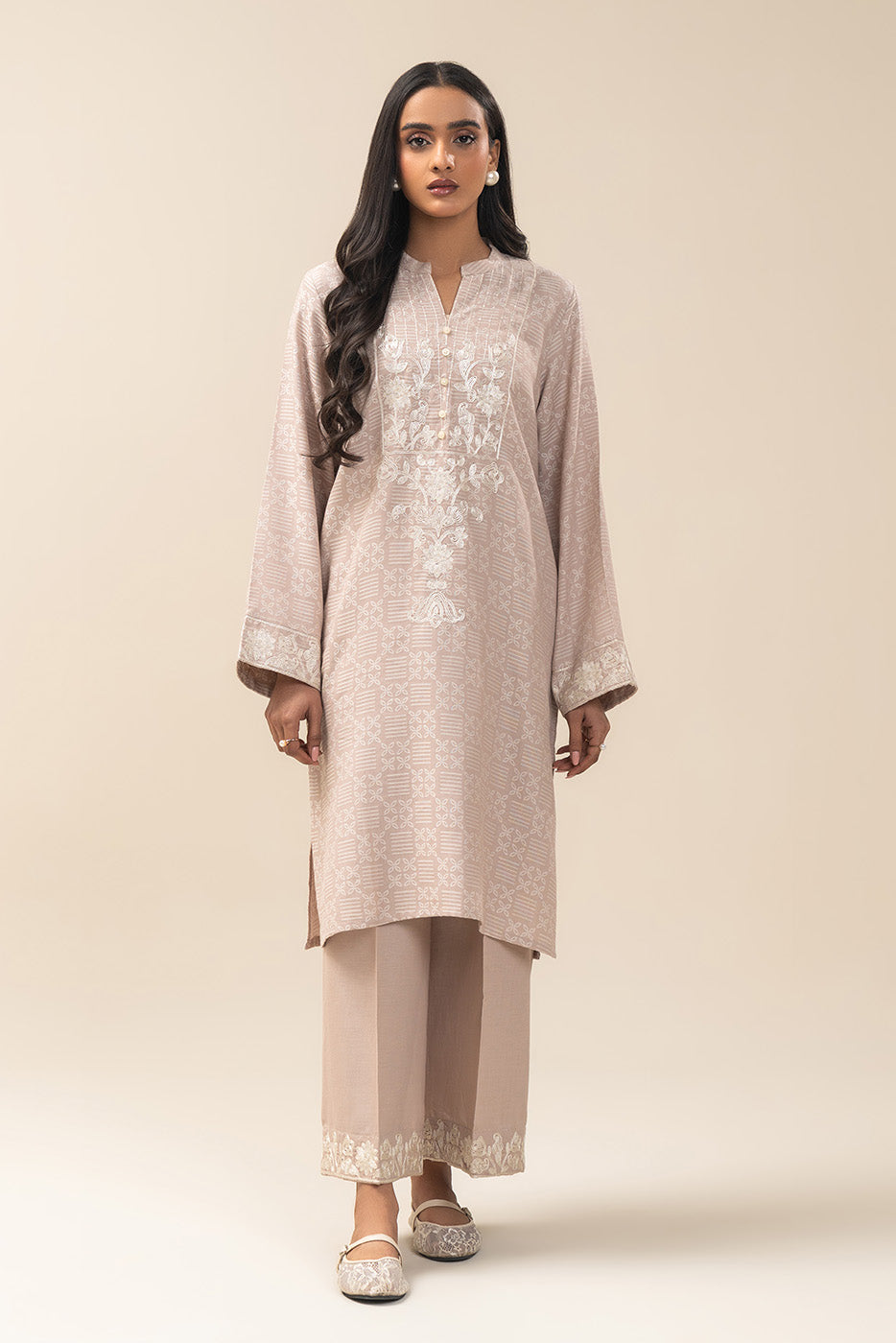2 PIECE EMBROIDERED YARN DYED SELF JACQUARD SUIT (PRET)