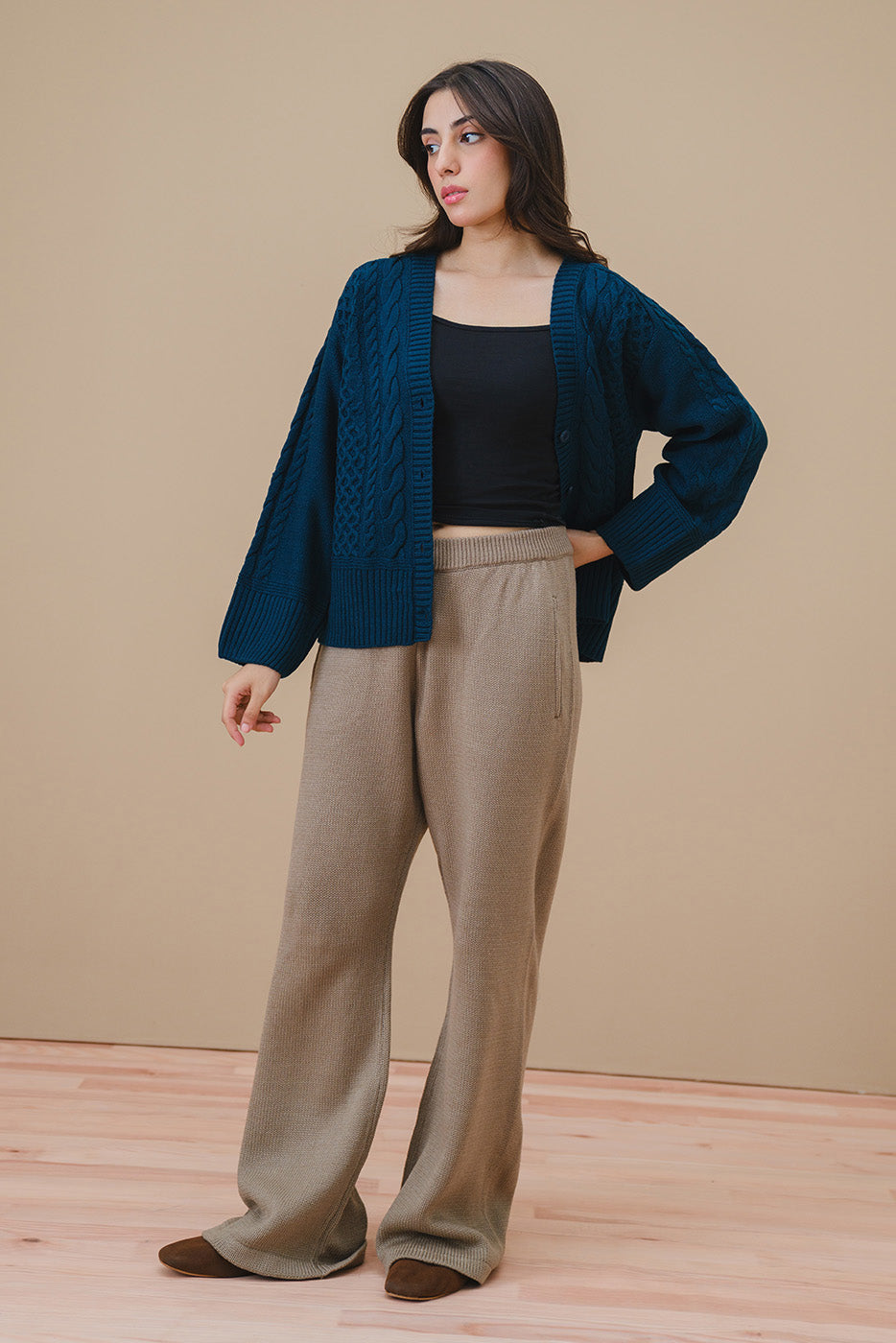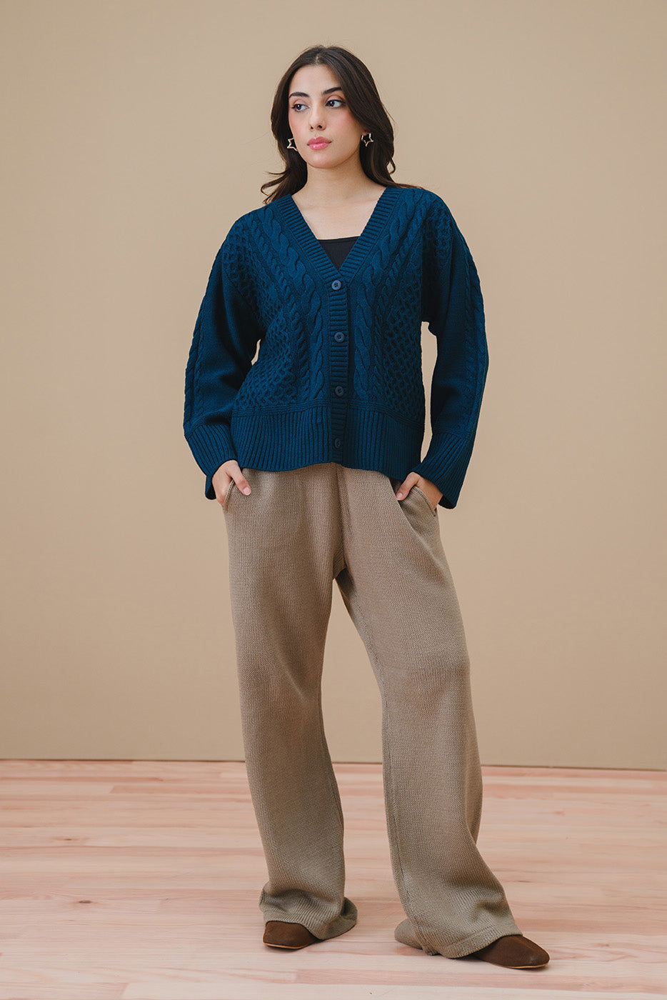 - Description: Chunky Knit V Neck Cardigan With Drop Shoulders