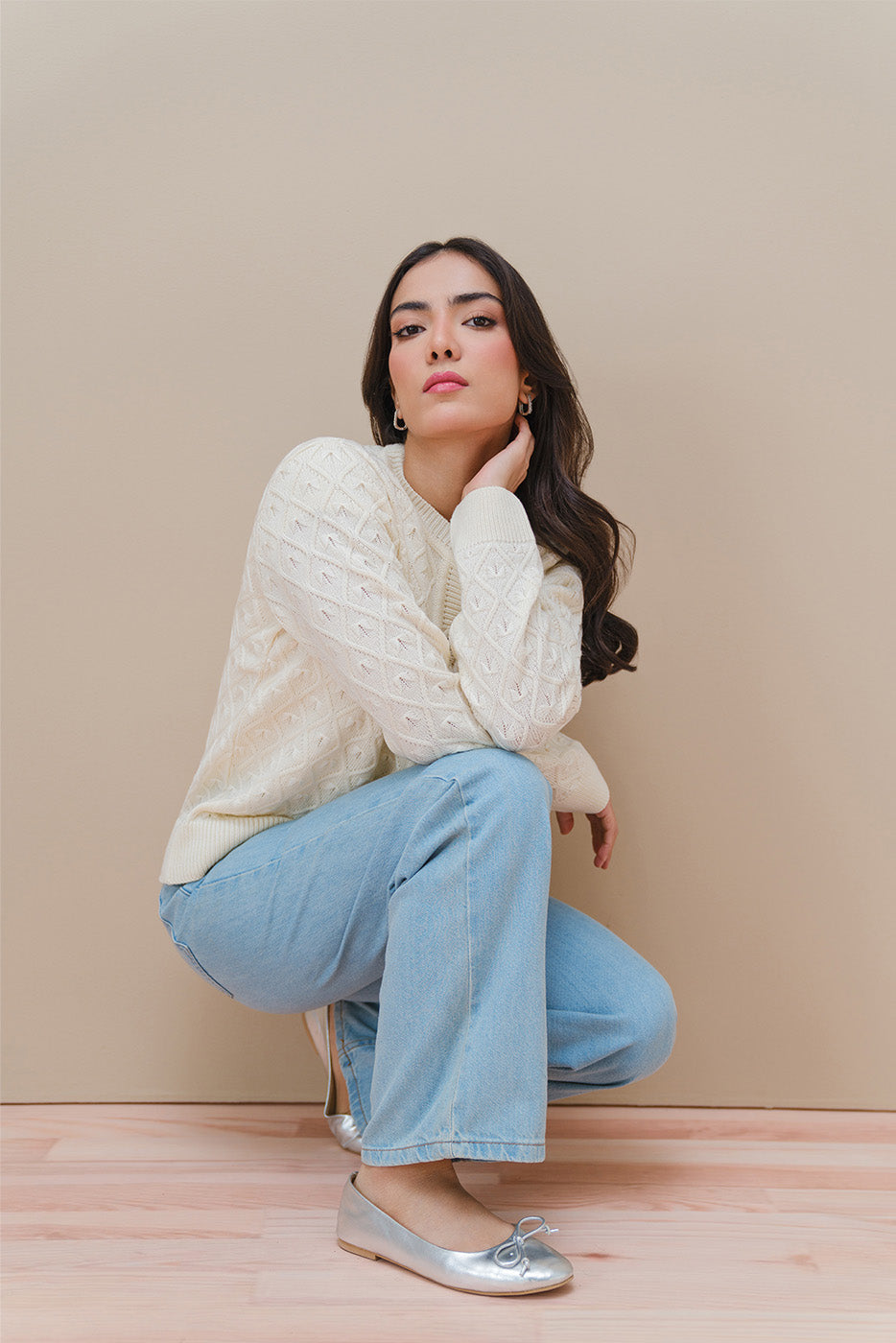 - Description: Slim Fit Bow Knit Cardigan With Drop Shoulders