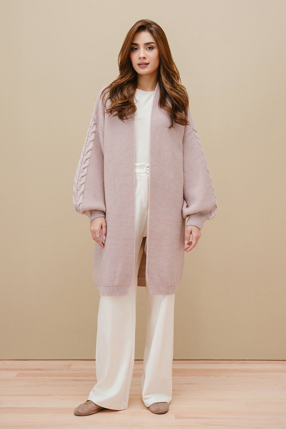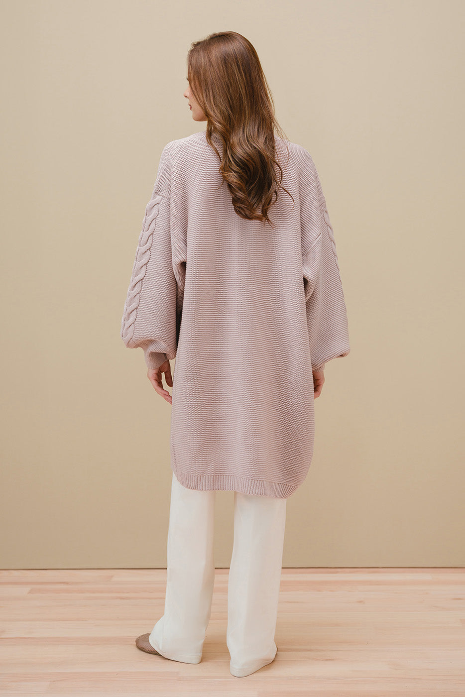 - Description: Cable-Knit Shrug With Drop Shoulders And Ribbed Hem