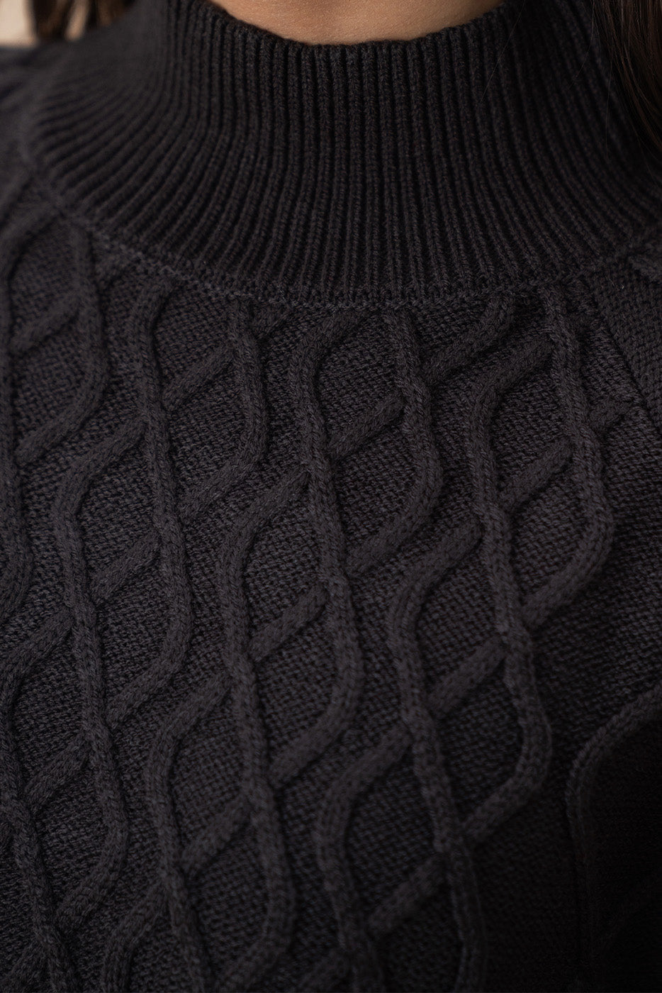 - Description: Moeck Neck Short Length Dress With Volumious Sleeves, Long Cuffs Along With Knit Pattern On Front