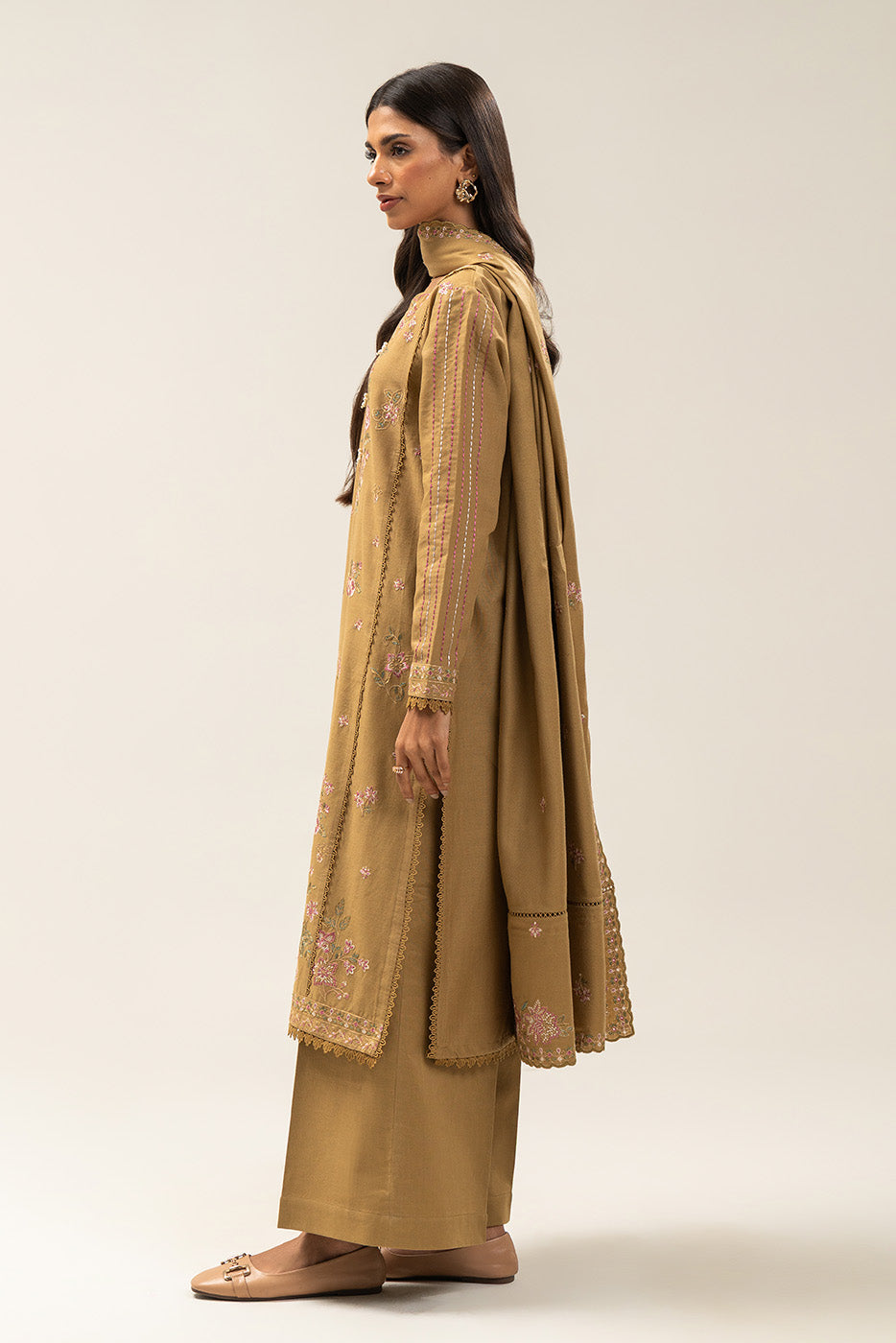 - 1.2 Mtrs Embroidered Light-Khaddar Front,