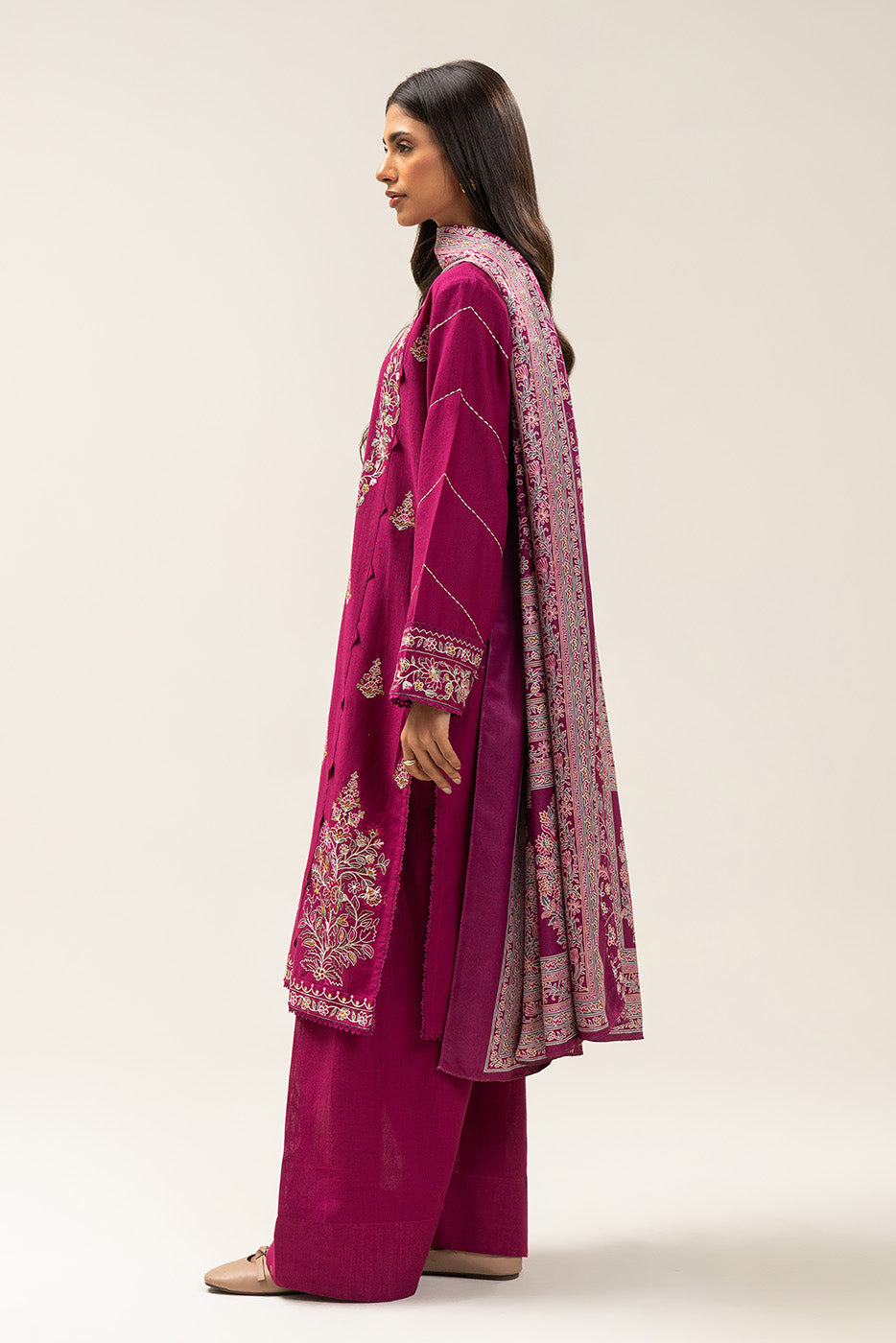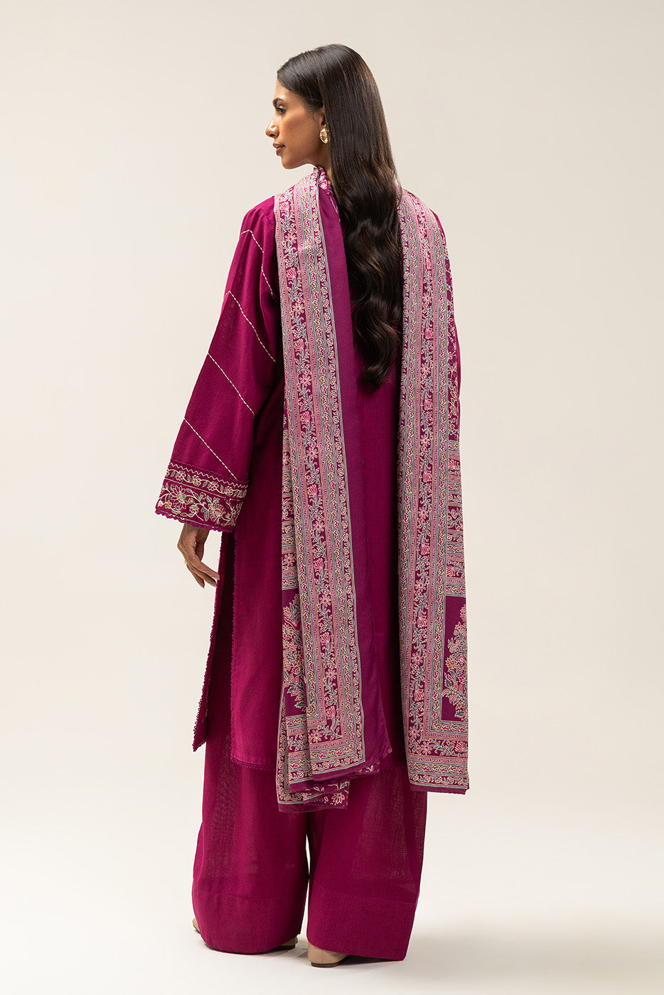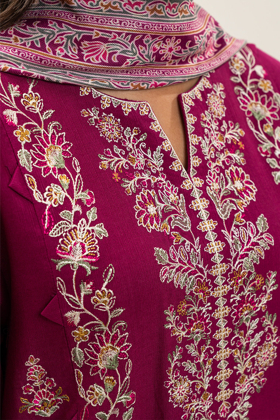 3 PIECE EMBROIDERED SLUB KHADDAR SUIT-VIVID CHERRY (UNSTITCHED)