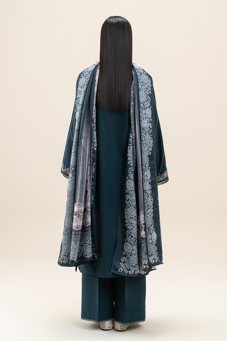 3 PIECE EMBROIDERED SLUB KHADDAR SUIT-VIVID BLUE