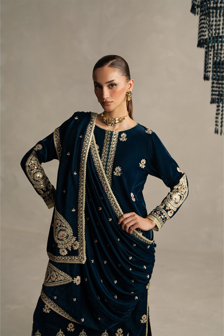 3 PIECE EMBROIDERED VELVET SUIT-AZURE SPELL (UNSTITCHED)