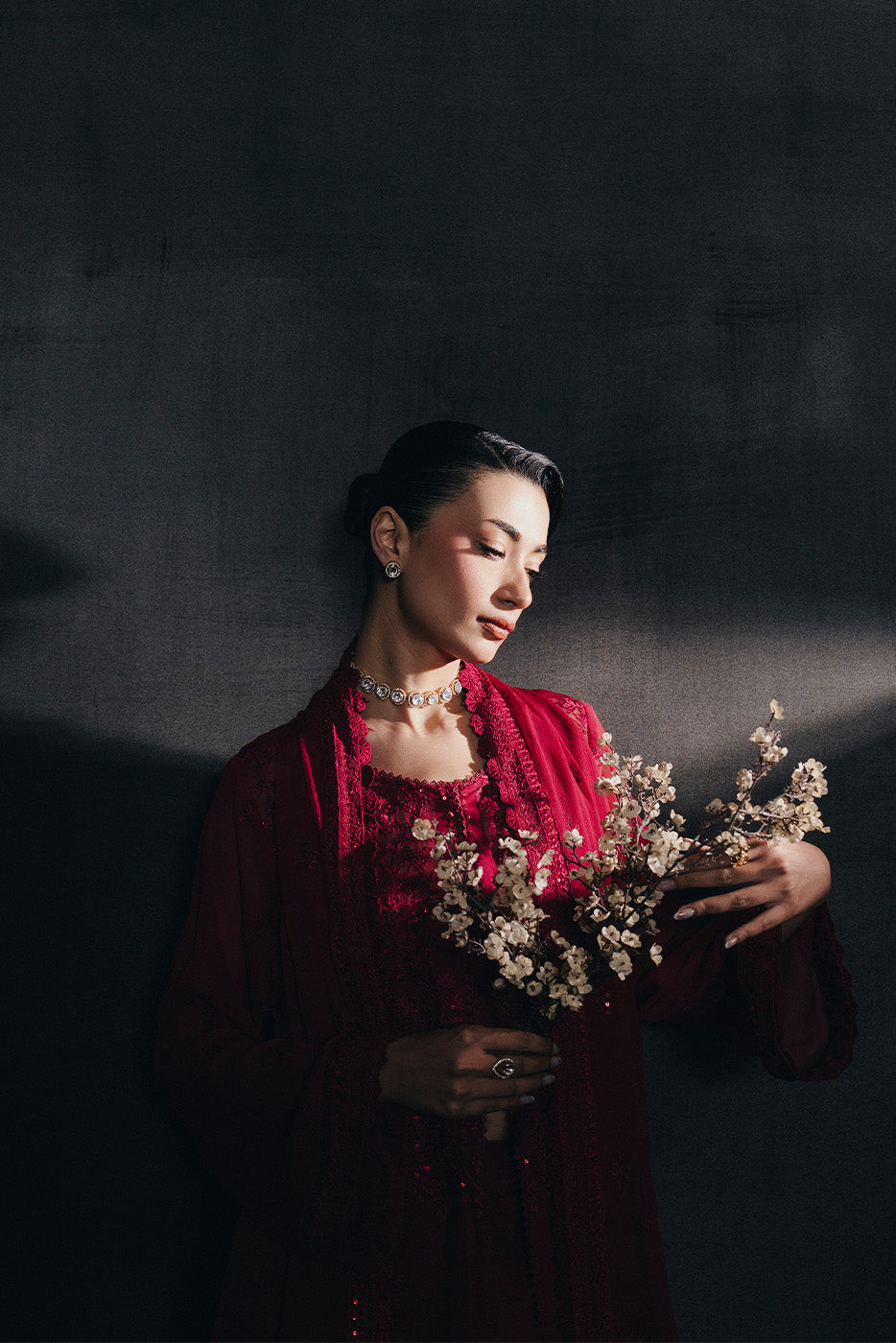 4 PIECE EMBROIDERED CHIFFON SUIT-CARMINE RED (UNSTITCHED)