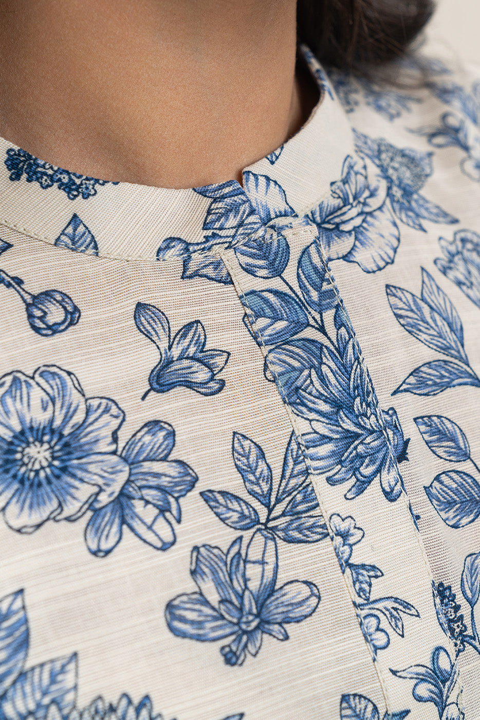 2 PIECE PRINTED SLUB KHADDAR SUIT-IVORY YALE (UNSTITCHED)