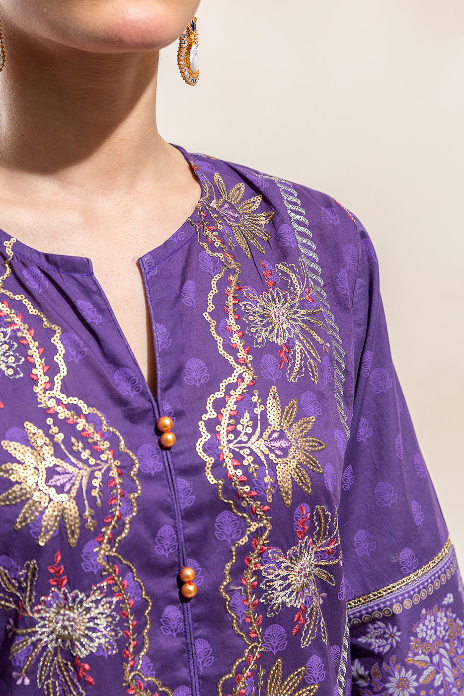- 2.9 Mtrs Printed Lawn Shirt With Embroidered ,