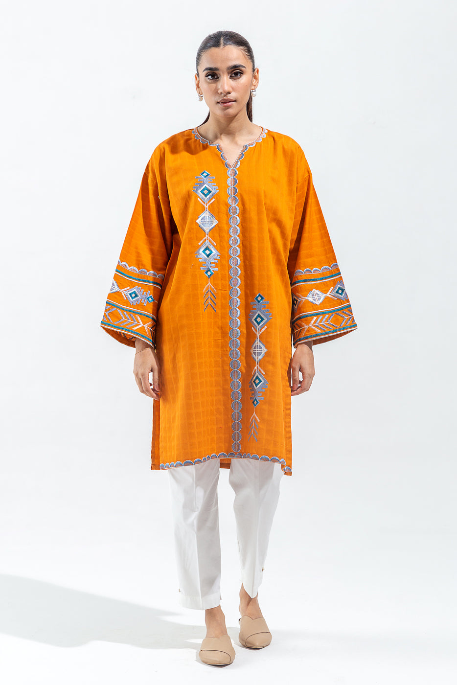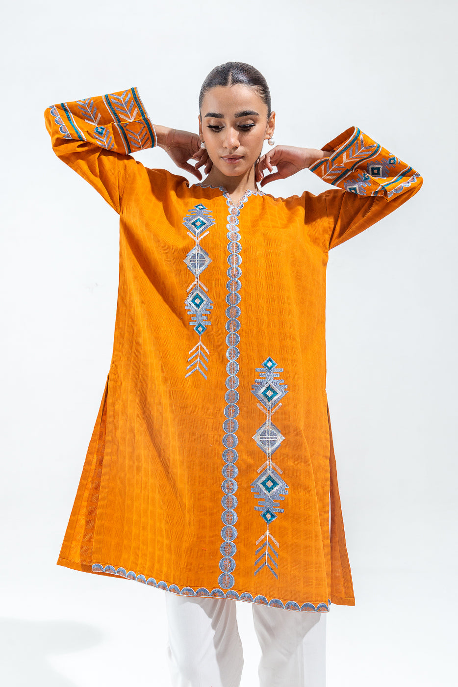 - Description: Embroidered Shirt With Front Pocket Back Yoke And Pleat.