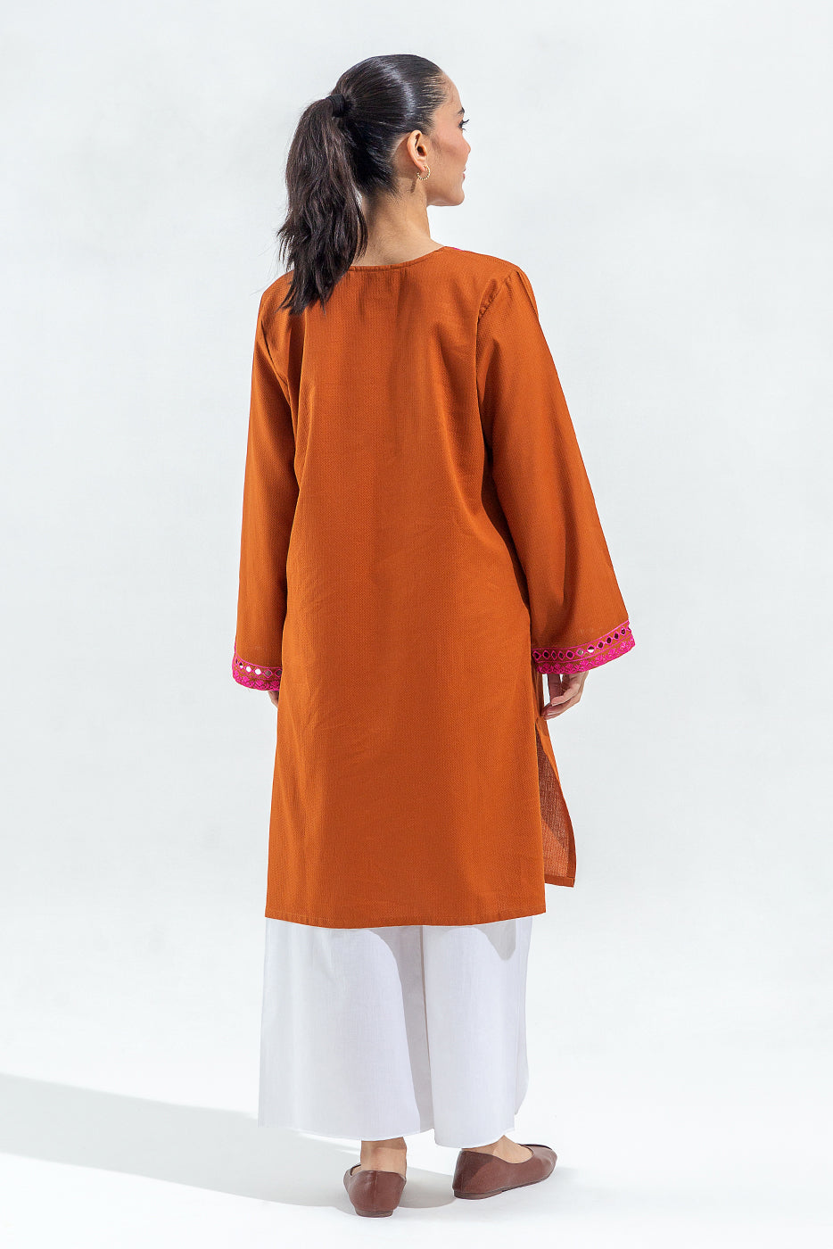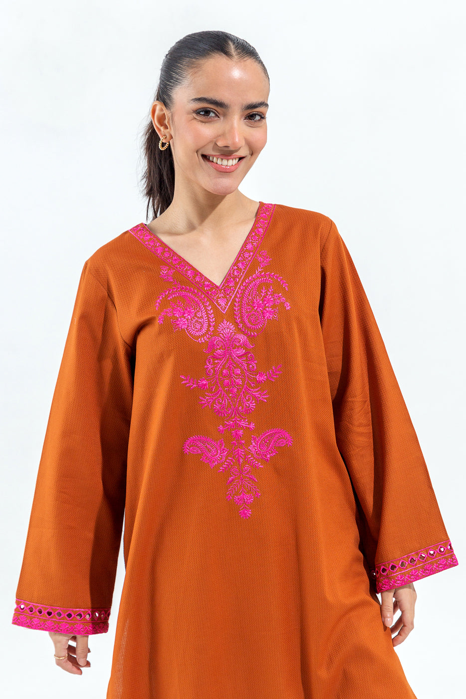- Description: Hot Pink Embroidered Neckline And Embroidery On Sleeves.