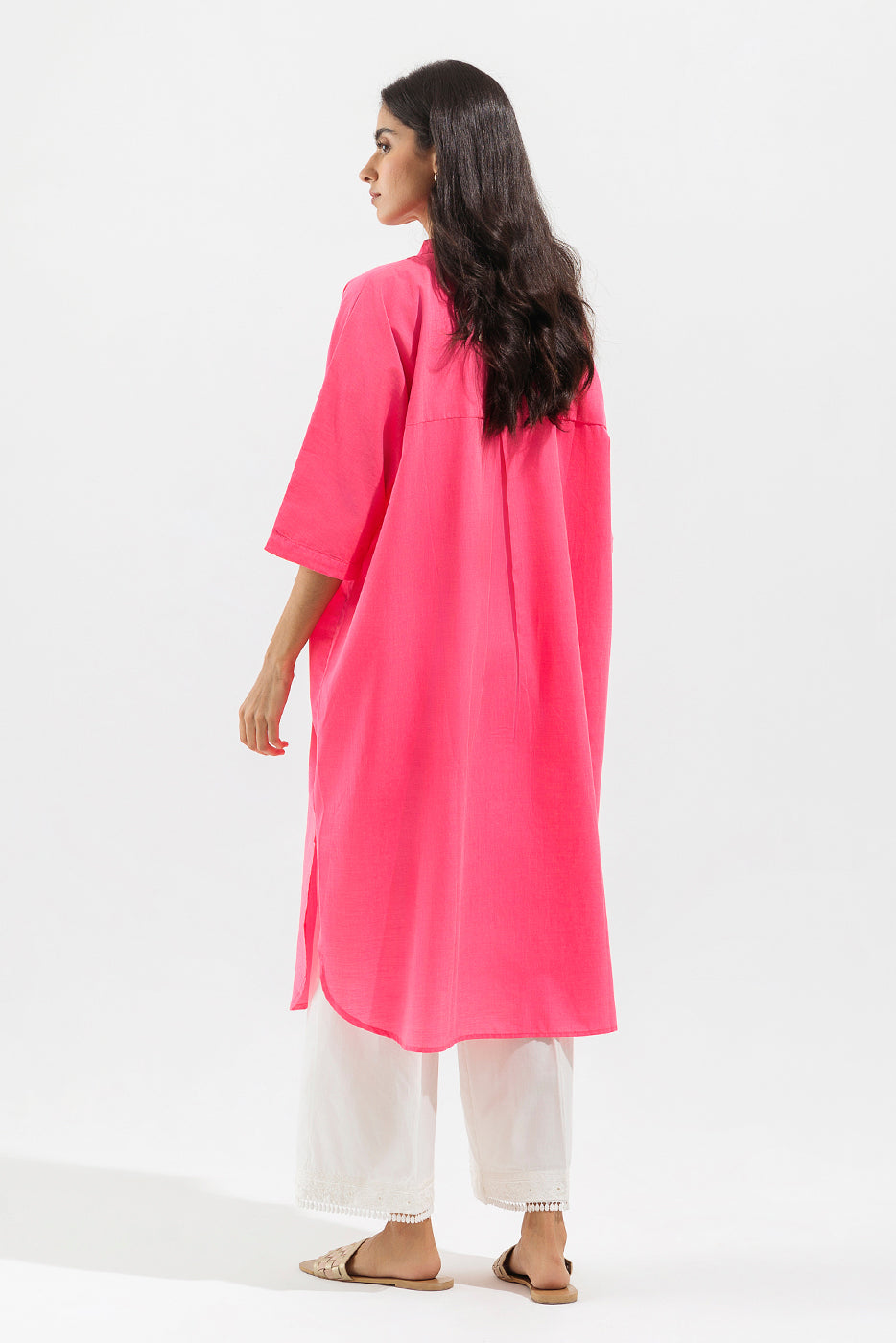 - Description: Basic Kurta With Placket And 3 Q Sleeves. Hand Made Button On Front.