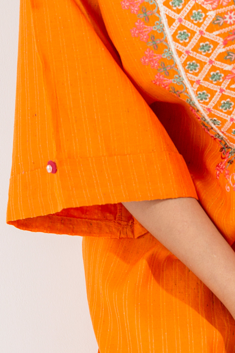 - Description: Basic Kurta With Embroidered Round Neckline And Handwork Detail And Cuff Detail On Sleeves.