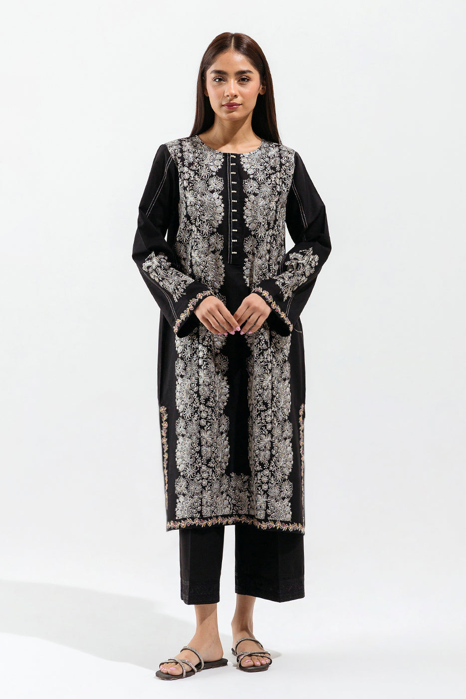 - Description: Fully Embroidered Kurta With Round Neck And Placket. Pearl Detail On Placket. Straight Hem.