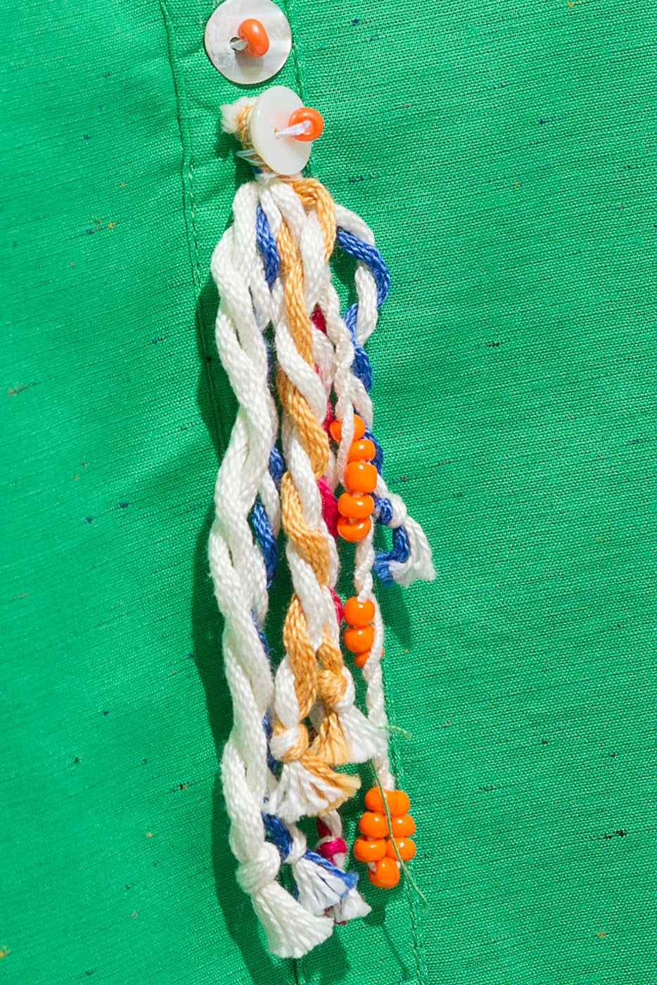 - Description: Band With Placket And Tassle Detail On Neckline. Round Hem.