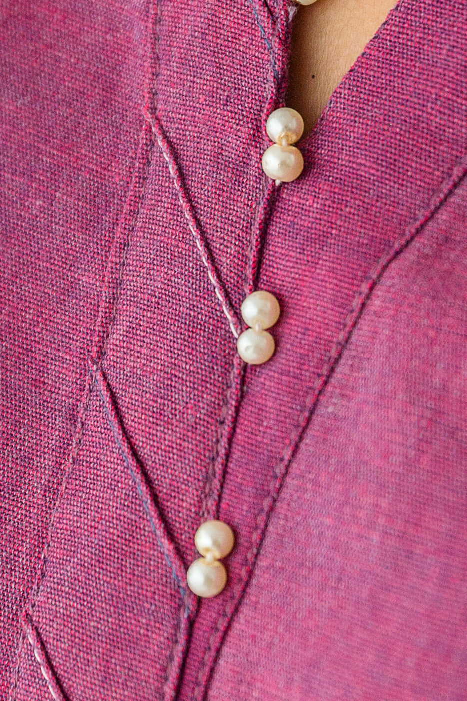 - Description: Basic Embroidered Two Piece Set With A Boat Neckline Having Pearl Details Paired Slack Pants Having Lace Insert And Pin Tucks.