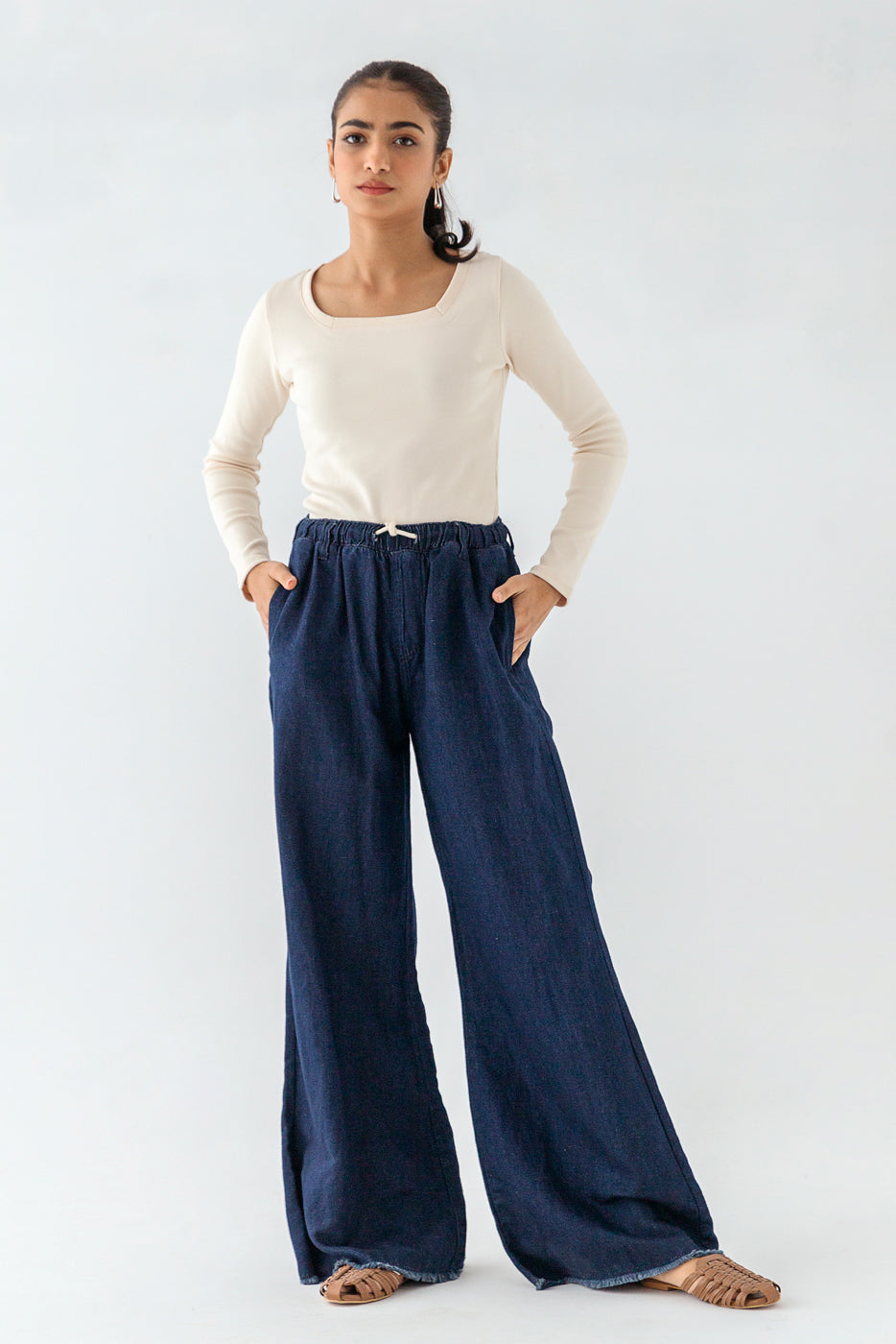 - Description: Off White Straight Neck Slim Fit Top With Full Sleeves.