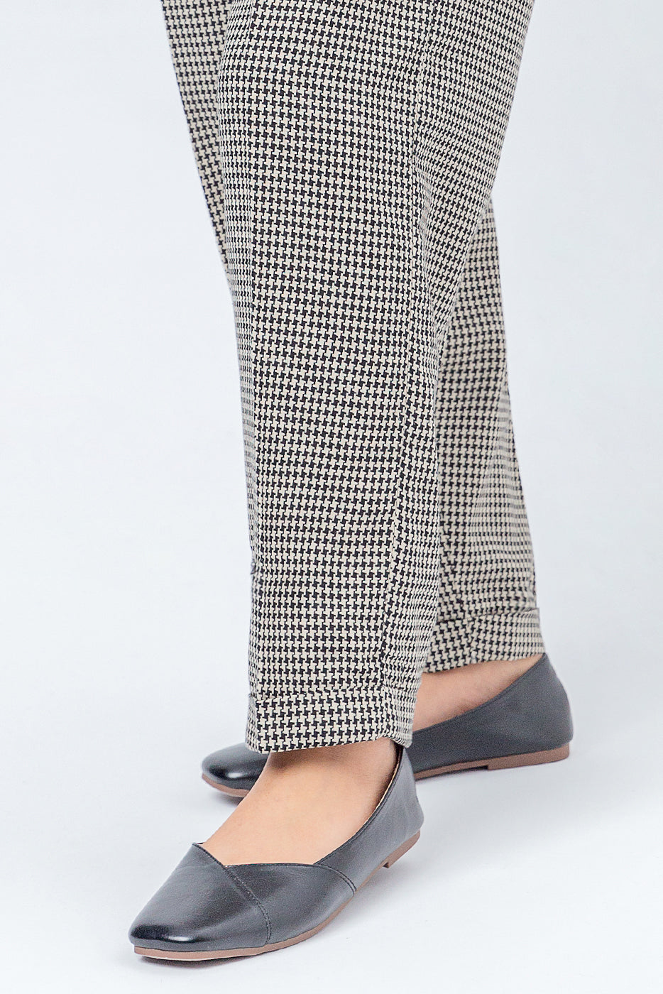 - Description: Hoonstooth Printed Tapered Pants With Elasticated Back, Cross Pockets And Turn Up Hem.