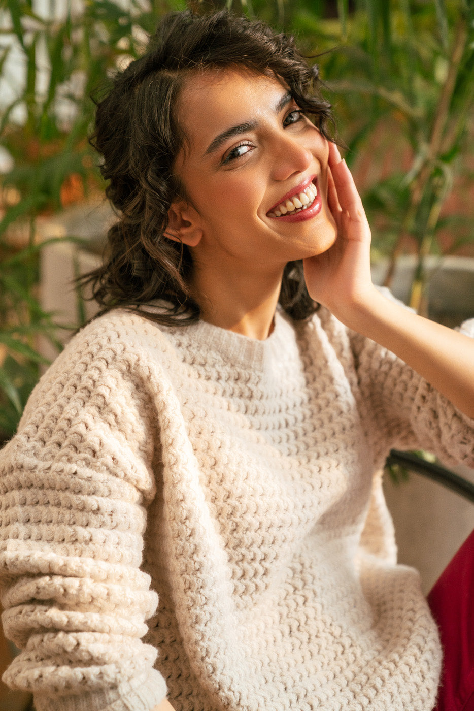 OFFWHITE TEXTURED KNIT SWEATER
