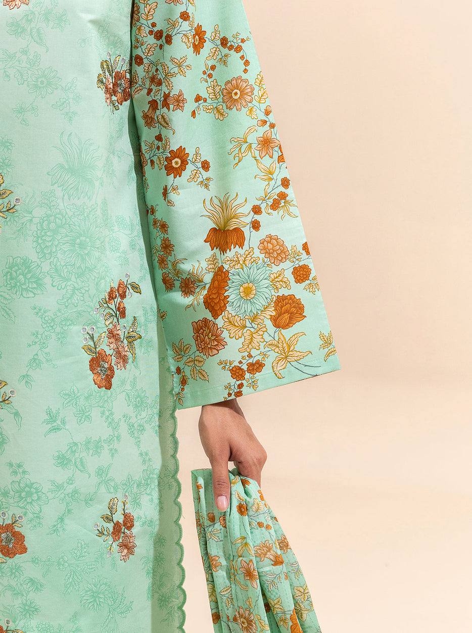 3 PIECE EMBROIDERED LAWN SUIT-SEA SHORE (UNSTITCHED)