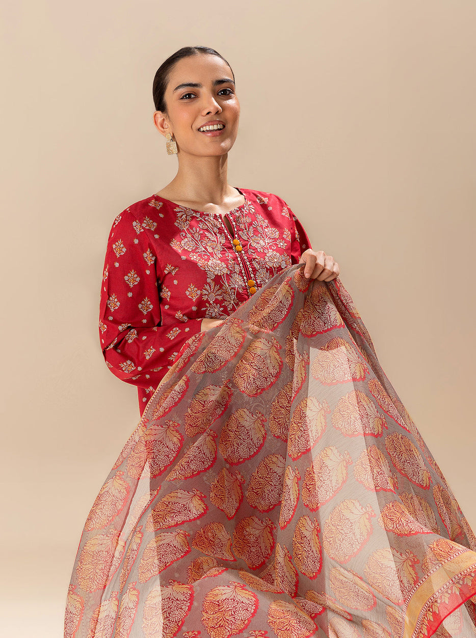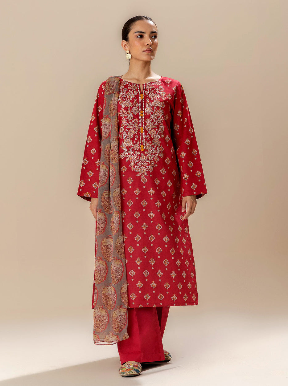 3 PIECE EMBROIDERED LAWN SUIT-BRIGHT POPPY (UNSTITCHED)